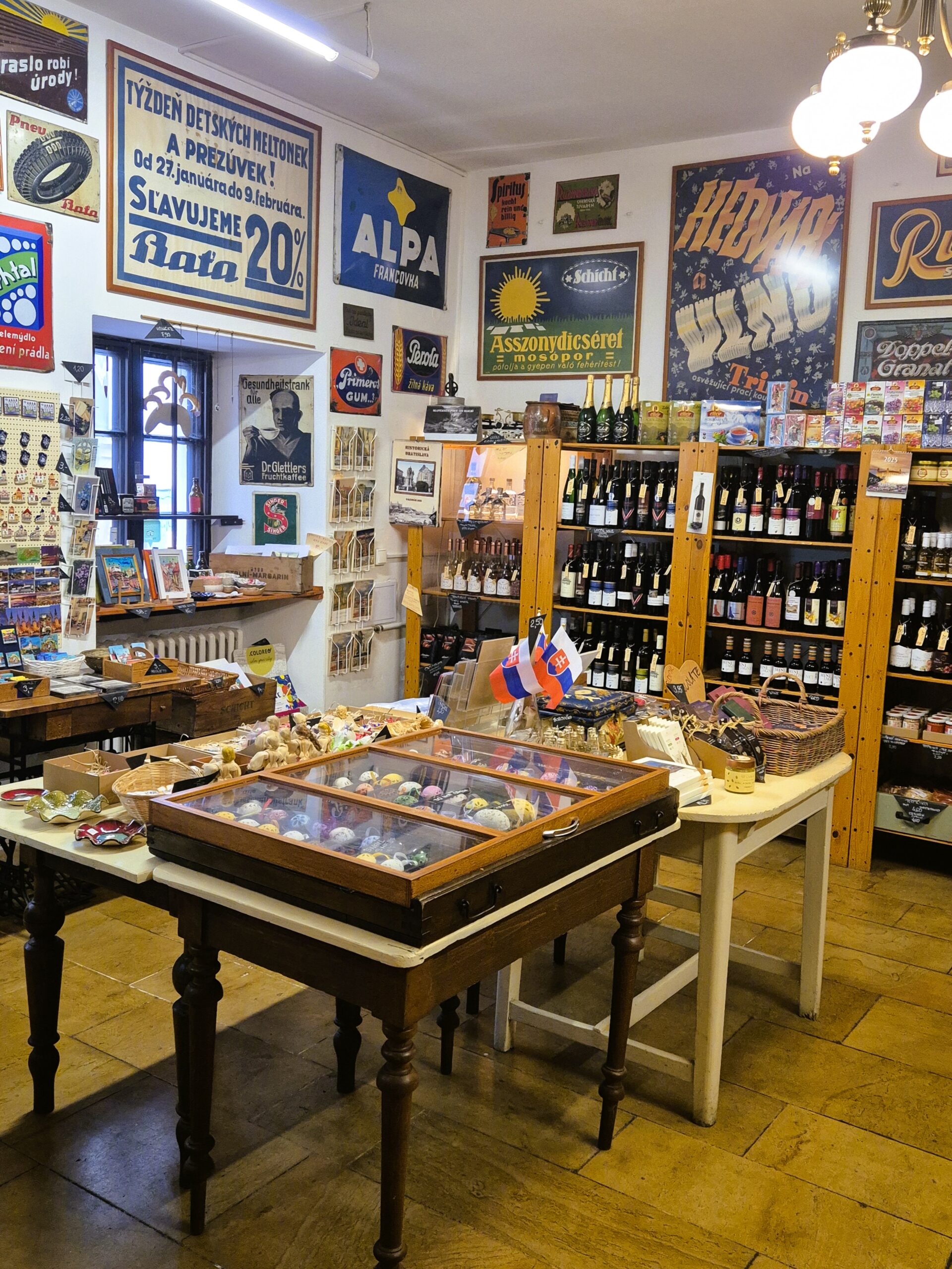Κυριολεκτικά κρυμμένο εντός μιας αψιδωτής στοάς, εκεί που ένα στενό δρομάκι ενώνει την οδό Michalská με την πλατεία Františkánsky, γραφικό και παμπάλαιο, το προσεγμένο αυτό μαγαζάκι με όλων των ειδών τα παραδοσιακά είδη, ακόμη κι αν δεν ήταν το πιο παλιό της πόλης, αποτελεί σίγουρα ένα ακόμη πρωτότυπο όχημα για ένα ταξίδι στο παρελθόν. Το vintage ντεκόρ και η νοσταλγική ατμόσφαιρα είναι έκδηλα από την μεσαιωνική είσοδο ακόμη, με τις παλιές αφίσες -κυρίως των παραδοσιακών γλυκών Pressburg bajgel- να μας υποδέχονται σε ένα χώρο που περισσότερο θυμίζει ζωντανό μουσείο, και που όπως θα διαπιστώσετε, εν μέρει είναι.