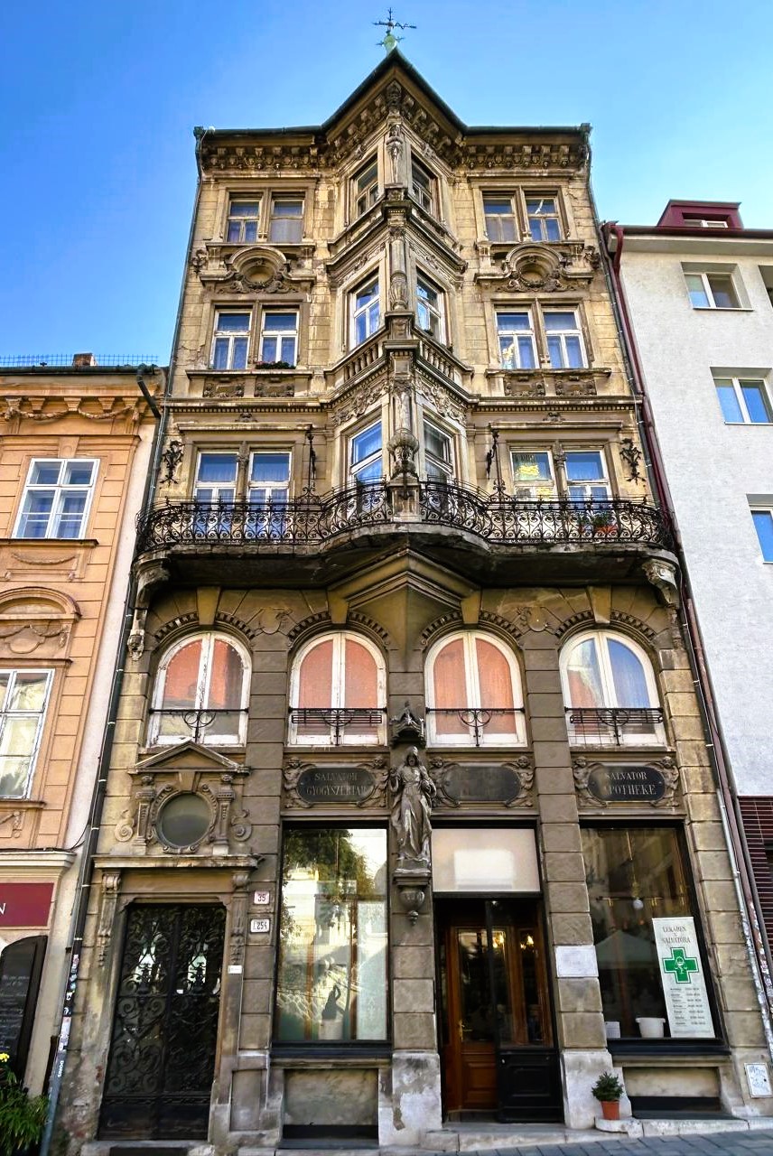 Η εμβληματική εκκλησία της σλοβακικής πρωτεύουσας, ο Καθεδρικός του Αγίου Μαρτίνου όπου λάμβαναν χώρα οι τελετές στέψης των Ούγγρων βασιλέων, συγκαταλέγεται μεταξύ των ορόσημων της Μπρατισλάβα και τα όρια του ιστορικού κέντρου όπου βρίσκεται αποτελούν ένα από τα γραφικότερα τμήματα της πόλης, στολισμένο με περίτεχνα κτήρια διαφόρων ιστορικών περιόδων. Θεαματικότερο όλων ακριβώς απέναντι του καθεδρικού, το πενταώροφο κτήριο της Οικίας Adler δεν περνά απαρατήρητο από κανέναν, όχι μόνο λόγω του πρωτότυπου έρκερ –του περίτεχνου τριγωνικού εξώστη που διατρέχει κάθετα την πρόσοψή του-, αλλά και λόγω του αγάλματος του Ιησού Λυτρωτή που κοσμεί το επίπεδο του ισογείου. Σε φυσικό μέγεθος, τραβά αμέσως την προσοχή ανάμεσα στα ανάγλυφα αναγεννησιακά putti, που φαίνεται να κρατούν τις ταμπέλες οι οποίες δηλώνουν την εμπορική ιδιότητα του ισογείου καταστήματος: Lekáreň Salvatora και Salvator Apotheke. Πρόκειται για ένα φαρμακείο αλλά όχι οποιοδήποτε, καθώς συγκαταλέγεται όχι μόνο στα εντυπωσιακότερα της Ευρώπης αλλά και στα παλαιότερα, με ιστορία που μας πηγαίνει πίσω στο 17ο αιώνα.