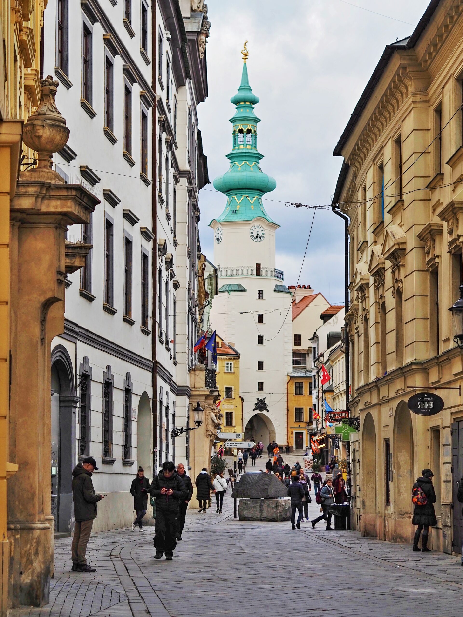 Μάλλον το πιο χαρακτηριστικό σημείο της παλιάς πόλης, η πύλη του Αγίου Μιχαήλ δεσπόζει πάνω από τις κορυφές όλων των άλλων κτηρίων στη Μπρατισλάβα, όντας, παράλληλα, ένα από τα παλαιότερα κτίσματα της σλοβάκικης πρωτεύουσας. Χτίστηκε στις αρχές του 14ου αιώνα και ανακαινίσθηκε το 1758, ενώ σήμερα στεγάζει το τμήμα όπλων στο μουσείο της πόλης και το άγαλμα του Αγίου Μιχαήλ, ένα από τα πιο πολυφωτογραφημένα σημεία του ιστορικού κέντρου