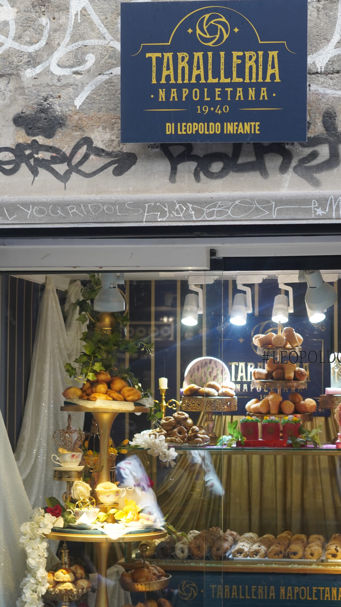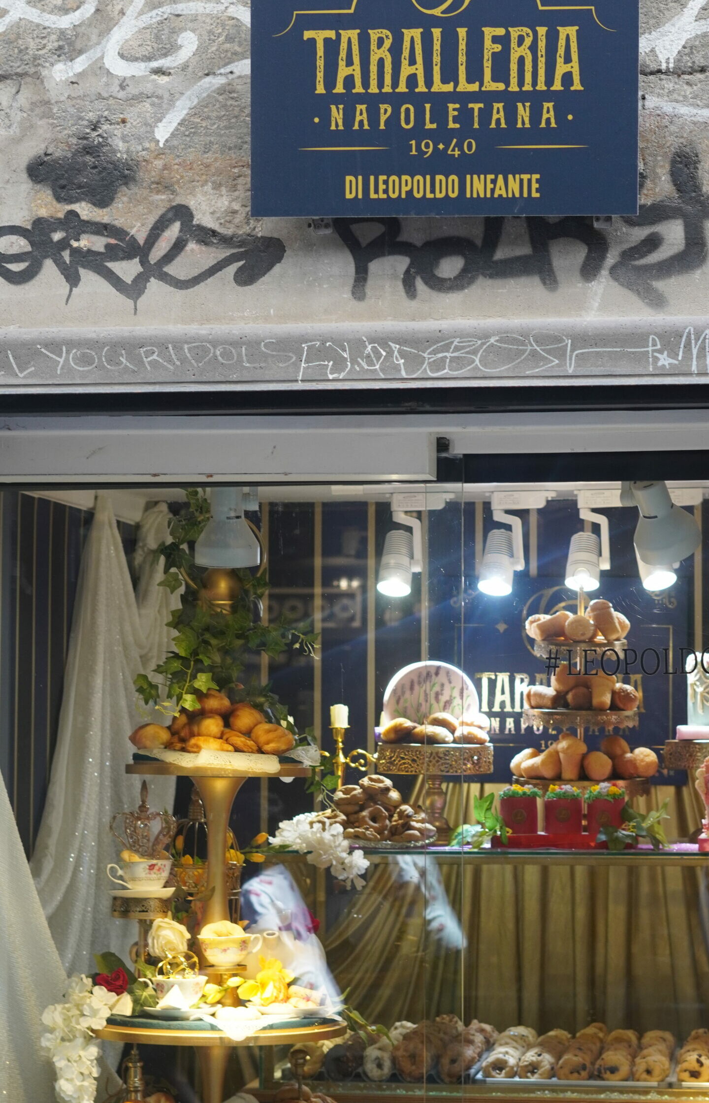 Οι νότιοι Ιταλοί συνοδεύουν τα aperitivi τους με τέλεια αλμυρά κουλουράκια, ανάμεσα σε άλλα θαυμαστά εδέσματα, βλέπε ελιές, τυριά κτλ. Τα πιο νόστιμα και φρεσκοψημένα taralli (έτσι λέγονται τα κουλουράκια!) θα τα βρείτε στην Taralleria Napoletana, εκεί όπου η παραγωγή δεν σταματά ποτέ και οι γεύσεις εντυπωσιάζουν με την ποικιλία και τη φαντασία τους. Από εκδοχές με τυρί, ντομάτα και βασιλικό, μέχρι συνδυασμούς με καυτερή πιπεριά, άγρια χόρτα, αλεύρι ολικής, κίτρινη ντομάτα Βεζούβιου, κόκκινο ή λευκό κρεμμύδι, κουρκουμά και δεντρολίβανο -κάθε μπουκιά είναι ένα μικρό γαστρονομικό θαύμα πραγματικά! Με τα χέρια φορτωμένα λιχουδιές, λοιπόν, η μέρα δίνει την θέση της στη νύχτα. Τα καφέ στις πλατείες και τις γειτονιές μετατρέπονται σε open air bars. Ντόπιοι και ξένοι γίνονται ένα, το φλερτ δίνει και παίρνει. Μου θύμισε εποχές Αθήνας (Καρύτση, Κολοκοτρώνη…) 2010 και 2011. Οι άνθρωποι είναι φιλόξενοι, ευγενικοί, πρόσχαροι.