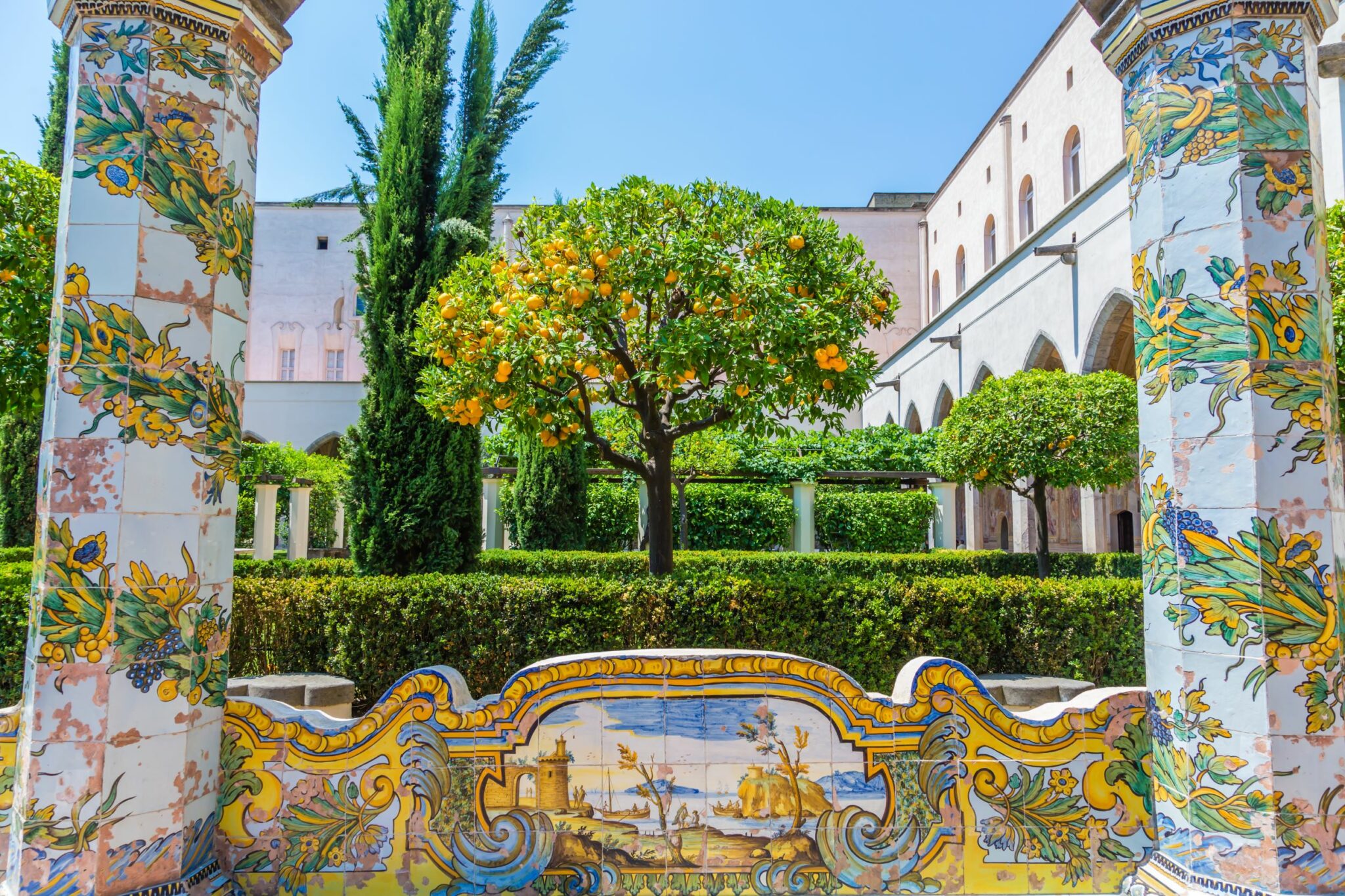 Θα αναγνωρίσετε την εκκλησία από το γοτθικό καμπαναριό και εκτός από τους ανάγλυφους βασιλικούς τάφους, θα επισκεφθείτε το μοναστήρι και ένα αρχαιολογικό μουσείο. Την παράσταση κλέβει ο γαλήνιος κήπος, διακοσμημένος με πλακίδια του 18ου αιώνα ζωγραφισμένα στο χέρι, με βασικά χρώματα το μπλε και το κίτρινο, που αναπαριστούν τοπία της Καμπανίας.