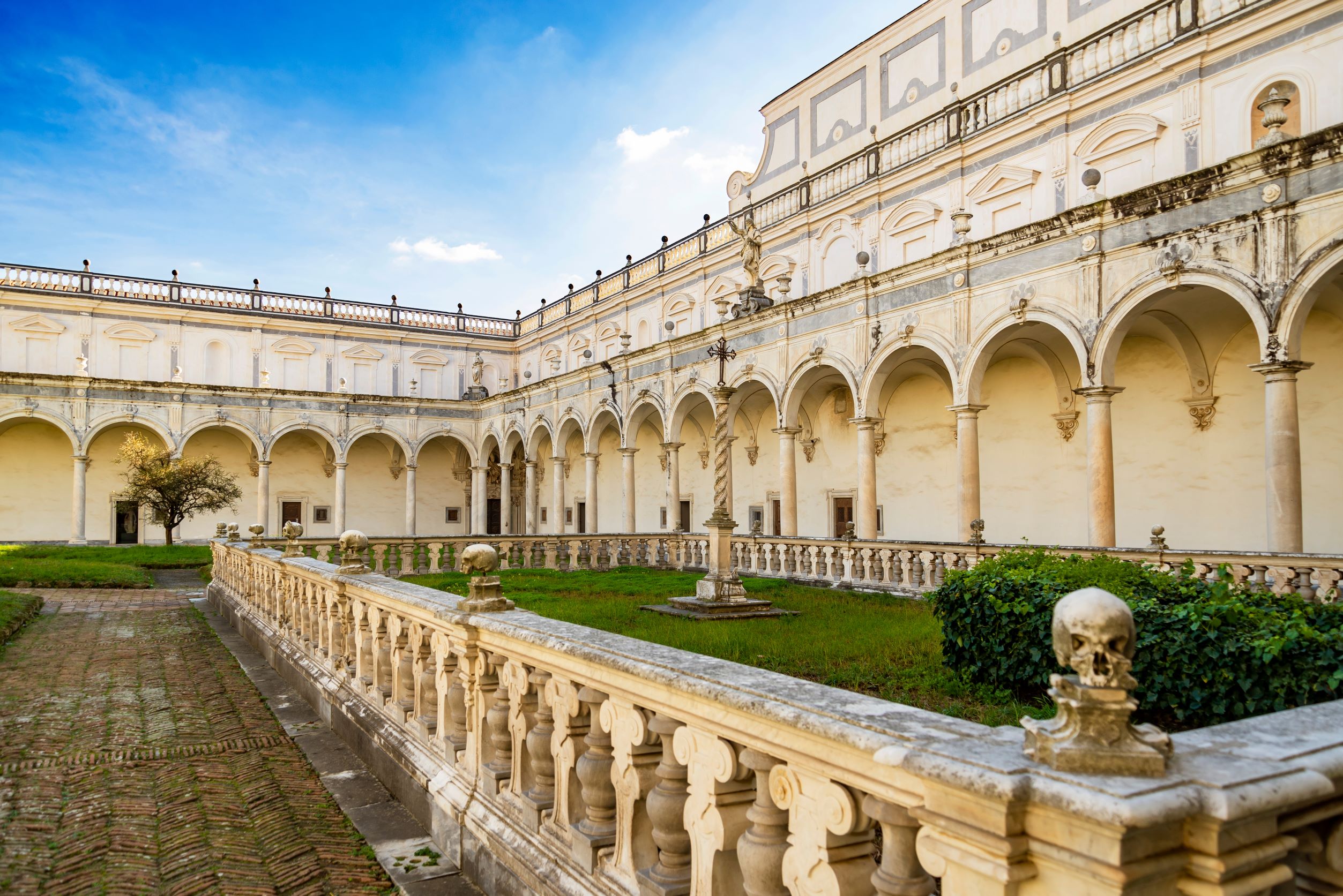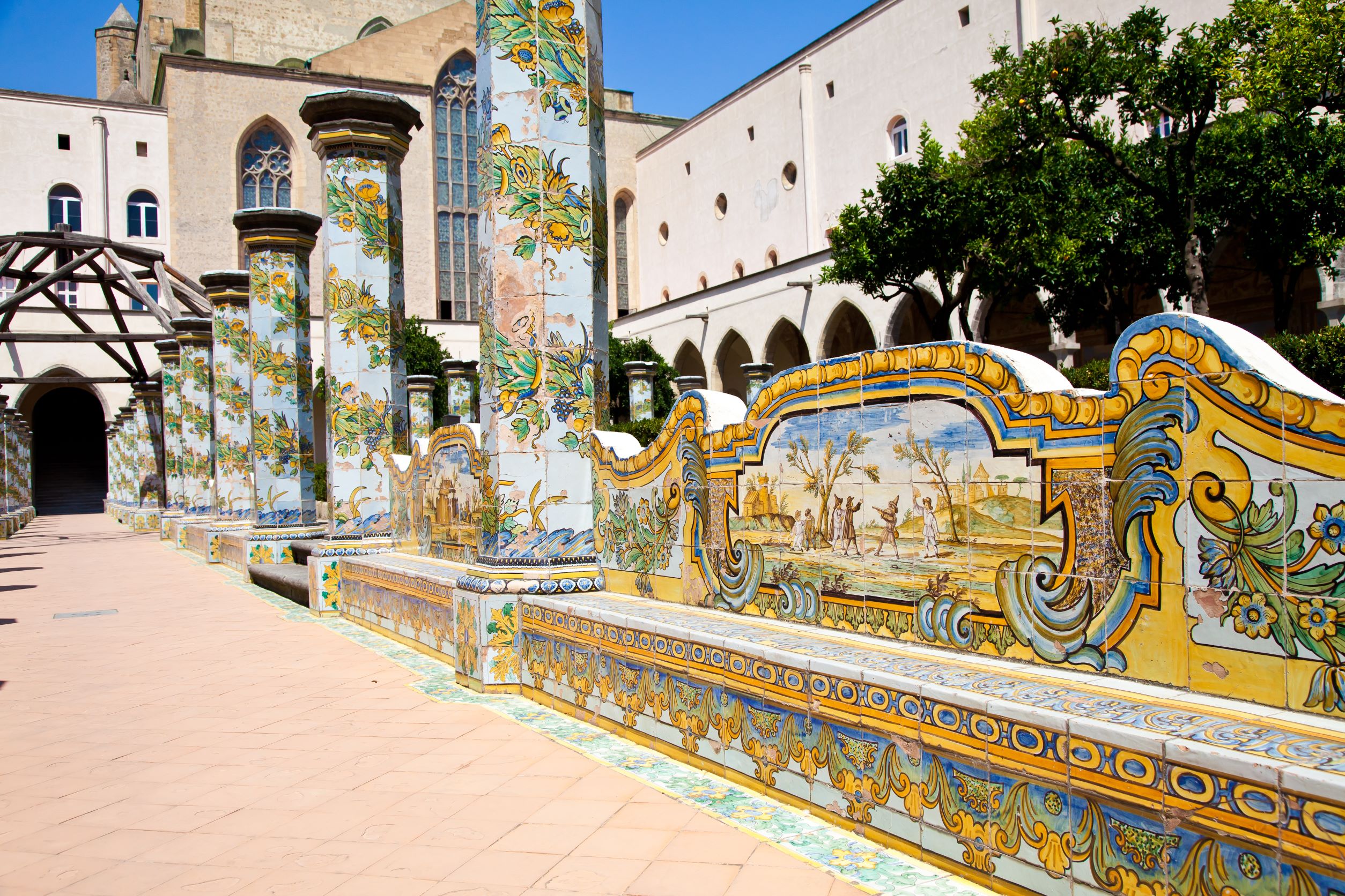Θα αναγνωρίσετε την εκκλησία από το γοτθικό καμπαναριό και εκτός από τους ανάγλυφους βασιλικούς τάφους, θα επισκεφθείτε το μοναστήρι και ένα αρχαιολογικό μουσείο. Την παράσταση κλέβει ο γαλήνιος κήπος, διακοσμημένος με πλακίδια του 18ου αιώνα ζωγραφισμένα στο χέρι, με βασικά χρώματα το μπλε και το κίτρινο, που αναπαριστούν τοπία της Καμπανίας.
