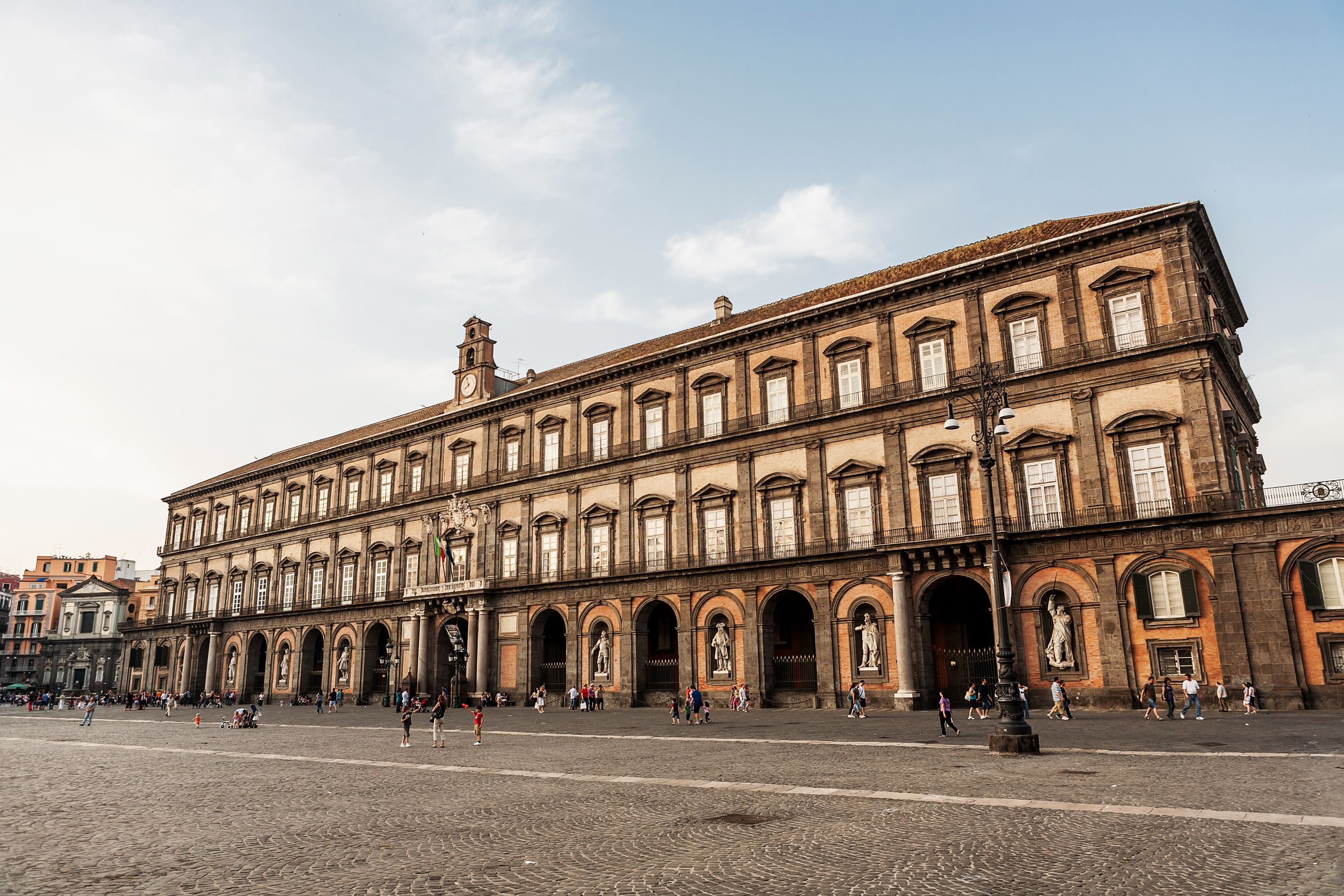 Η κατασκευή τους ξεκίνησε το 1600 και διήρκησε 250 χρόνια. Τριάντα αίθουσες απαρτίζουν τα Βασιλικά Διαμερίσματα, περιλαμβάνοντας το Θέατρο της Αυλής και τη Sala di Ercole με αντίγραφα σημαντικών αγαλμάτων. Ολοκληρώστε την επίσκεψή σας με το παλιό αμαξοστάσιο και τους πρώην στάβλους, αλλά και την Εθνική Βιβλιοθήκη με 2.000.000 βιβλία, μία από τις σημαντικότερες της Ιταλίας. Βγαίνοντας από το παλάτι, στο ανατολικό άκρο της πλατείας, θα δείτε ένα κτήριο που μοιάζει στο Ρωμαϊκό Πάνθεον.