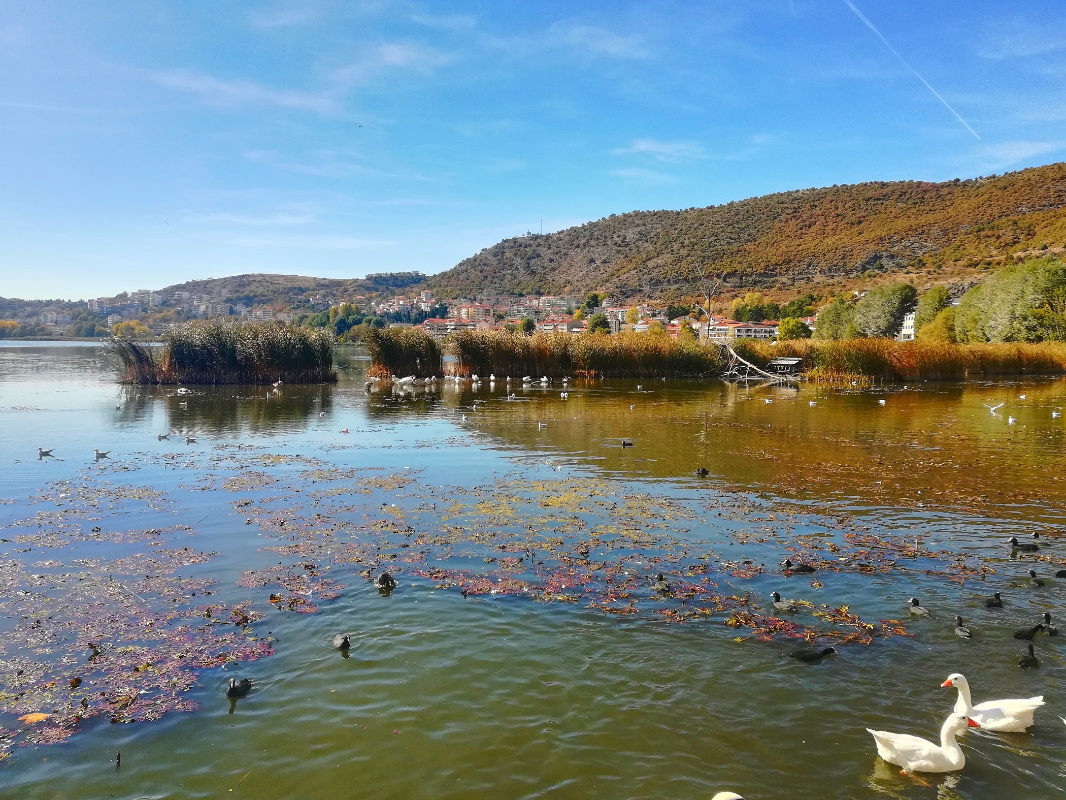 Οι επιστήμονες εικάζουν ότι η σημερινή λίμνη είναι απομεινάρι μιας τεράστιας υδάτινης έκτασης, που βρισκόταν στο ίδιο σημείο πριν 23 εκατομμύρια χρόνια. Τα υπέροχα νερά καθρεφτίζουν το Βίτσι, το Τρικλάριο και τους πρόποδες του όρους Βόιο, δημιουργώντας μια αίσθηση απόλυτης γαλήνης, που, όπως είπαμε και πιο πριν, συνδυάζεται με έναν φυσικό βιότοπο μεγάλης σημασίας. Γι’ αυτό και η Ορεστιάδα είναι επισήμως χαρακτηρισμένη ως «μνημείο φυσικού κάλλους», έχοντας συμπεριληφθεί και στο ευρωπαϊκό δίκτυο προστασίας Natura 2000. Μην εκπλαγείτε, λοιπόν, αν συναντήσετε αργυροπελεκάνους να απογειώνονται με μαεστρία, ερωδιούς να στέκονται στο ένα πόδι αγναντεύοντας στα ρηχά ή κορμοράνους να εκτελούν εντυπωσιακές βουτιές. Εδώ βρίσκουν καταφύγιο περισσότερα από 200 είδη πουλιών.