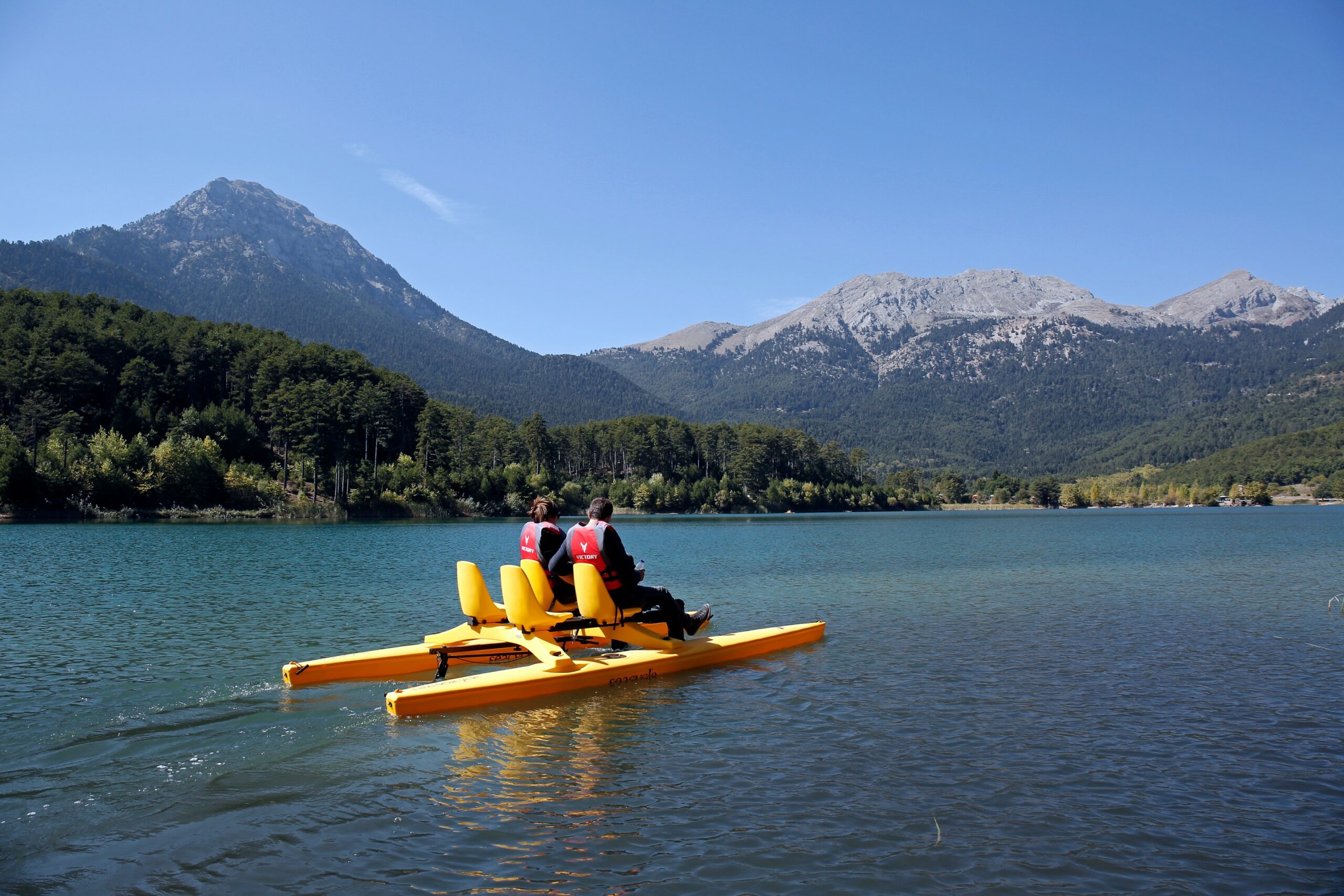 Άλογα προσφέρονται για μικρές ή και μεγαλύτερες ιππικές διαδρομές, κίτρινα, φανταχτερά υδροποδήλατα, (www.exploreziria.gr ) διασχίζουν τα πράσινα και σμαραγδένια νερά, αλλά και την αντανάκλαση των πανύψηλων έλατων στην αντίπερα όχθη.
