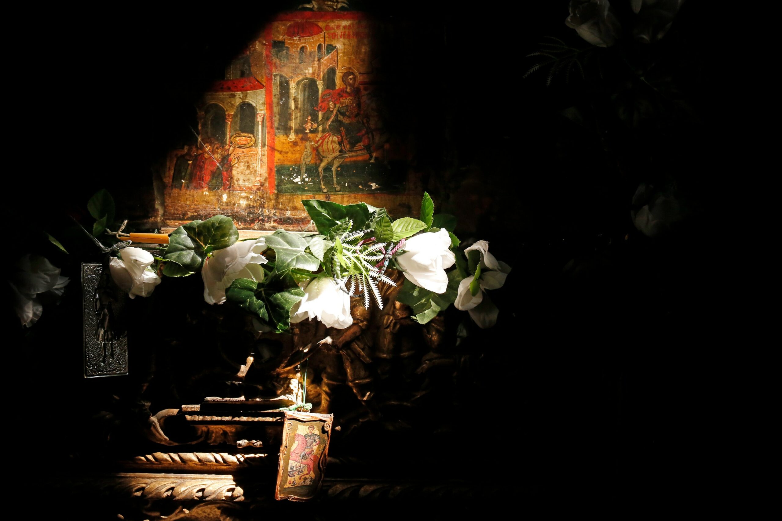 Ανηφορίζοντας προς το μοναστήρι του Αγίου Γεωργίου, στην πλαγιά πάνω από τη λίμνη και σε υψόμετρο κοντά στα 1.000 μέτρα, μεγάλα λεωφορεία γεμάτα προσκυνητές παίρνουν αργά τις στροφές, χαρακτηρίζοντας την εποχή στην οποία ζούμε.