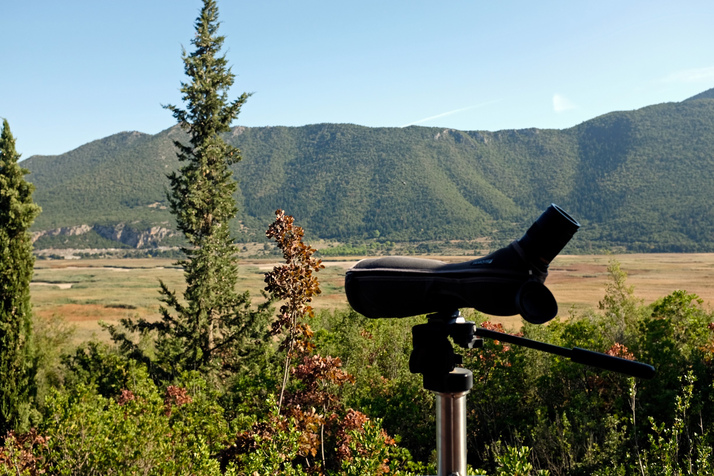 Είναι αρχές Οκτωβρίου και η θρυλική από τους Άθλους του Ηρακλή και τις διάσημες Όρνιθες λίμνη είναι ακόμα στεγνή και άνυδρη γεμάτη από θάλασσες από καλαμιές οι οποίες κινούνται χορευτικά κατά την προσταγή του αέρα. Σταματώ το αυτοκίνητο στην άκρη του δρόμου, σβήνοντας τη μηχανή, δέκτης πια της μυθικής ατμόσφαιρας της περιοχής.