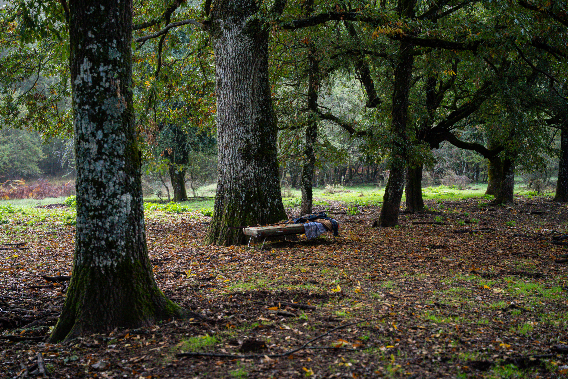 Είμαστε λίγο έξω από τη Βήσσανη, στο δρυοδάσος που απλώνεται βόρεια του χωριού. Πρωί μέσα στον χειμώνα, ο αέρας μυρίζει χώμα και βρεγμένο ξύλο. Το μονοπάτι χάνεται κάτω από τις βελανιδιές, δέντρα τεράστια, κάποια αιωνόβια.