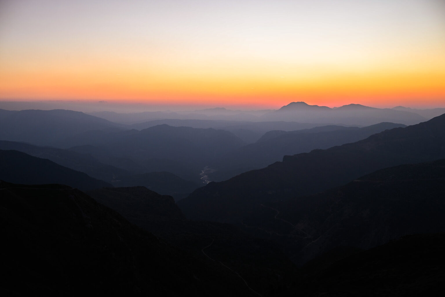 Στη διάρκεια αυτής της μαγικής ώρας, το μόνο που ακούγεται είναι ο ήχος του ανέμου που γλιστρά ανάμεσα στις κορυφές. Είναι μια υπενθύμιση πως βρισκόμαστε σε έναν τόπο όπου η φύση κυριαρχεί ακόμη, όπου ο άνθρωπος είναι απλά ένας σιωπηλός παρατηρητής της αιώνιας εναλλαγής του φωτός και του σκοταδιού.