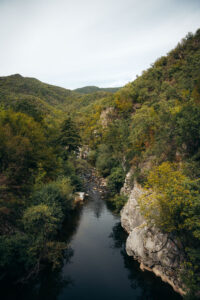 Καθώς προχωρούσαμε βαθύτερα στο μονοπάτι, η παρουσία του Αρκουδορέματος γινόταν όλο και πιο έντονη. Αυτός ο παραπόταμος του Νέστου έπαιζε κρυφτό μαζί μας, άλλοτε κρυμμένος πίσω από πυκνή βλάστηση και άλλοτε αποκαλυπτόμενος σε όλο του το μεγαλείο. Ο ήχος του νερού, πότε ως απαλός ψίθυρος και πότε ως δυνατός παφλασμός, μας συνόδευε σε όλη τη διαδρομή, δημιουργώντας ένα φυσικό ηχητικό χαλί.