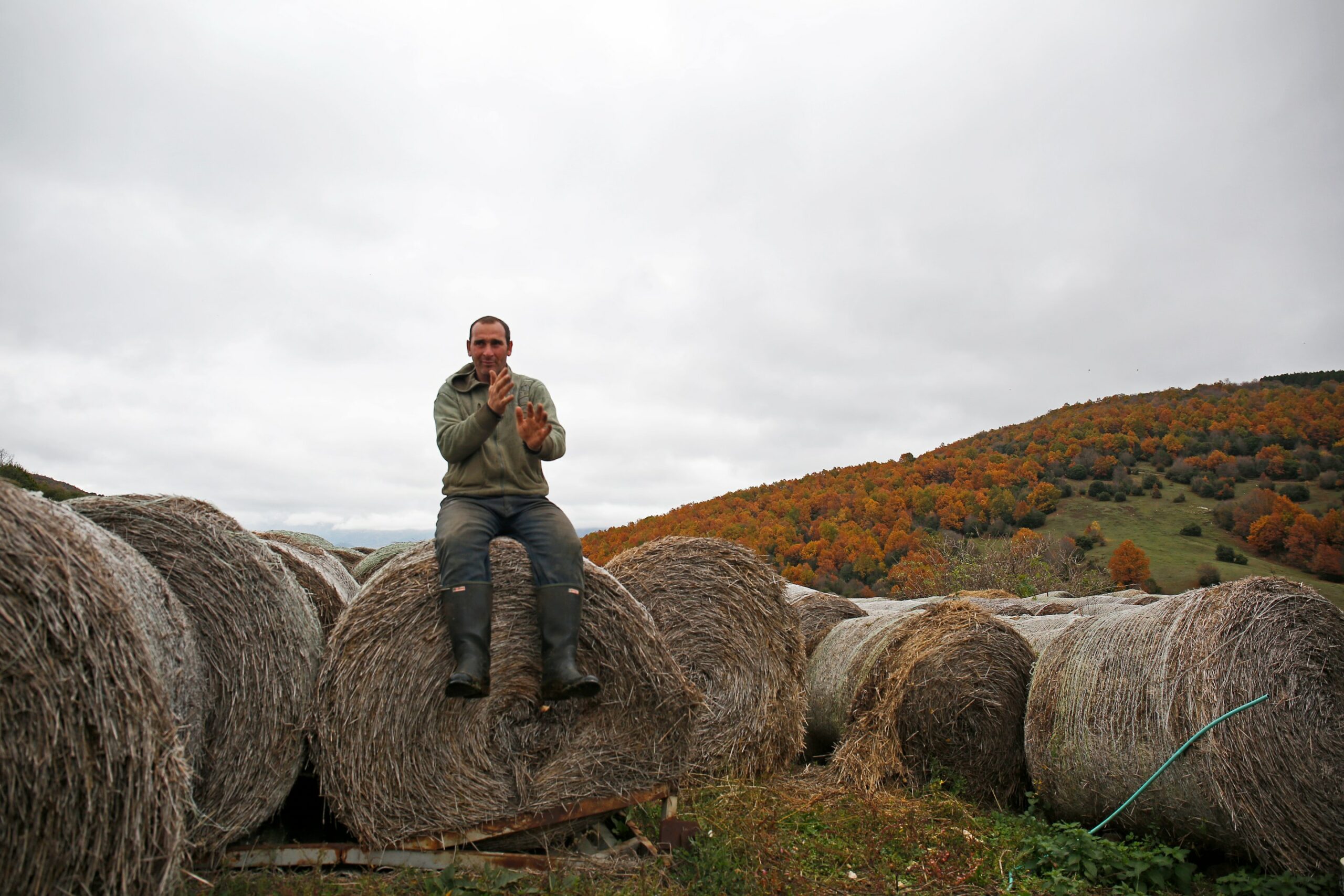 Χώμα, χαμηλό χορτάρι και θάμνοι, κλαδιά, πέτρες, λίγα δέντρα με φθινοπωρινά χρώματα, ξανά χώμα. Όλα αυτά δεν φαίνεται να ενοχλούν τον παραγωγό γάλακτος Ιωάννη Αλτή. Κυρίως δεν φαίνεται να ενοχλούν τις αγελάδες του που μοιάζουν με χαρούμενα λαγωνικά σκυλιά καθώς ψάχνουν την τροφή τους στο έδαφος. «Την άνοιξη είναι προφανώς καλύτερα αλλά εμένα μου αρέσει να βγαίνω με τα ζώα στο βουνό κάθε μέρα, χειμώνα-καλοκαίρι» λέει ο κος Αλτής, ο οποίος καλλιεργεί μόνος του την τροφή που δίνει στις αγελάδες. «Και τα ζώα προτιμούν να είναι έξω» μας λέει δείχνοντας τις αγελάδες να ξαπλώνουν αμέριμνες.