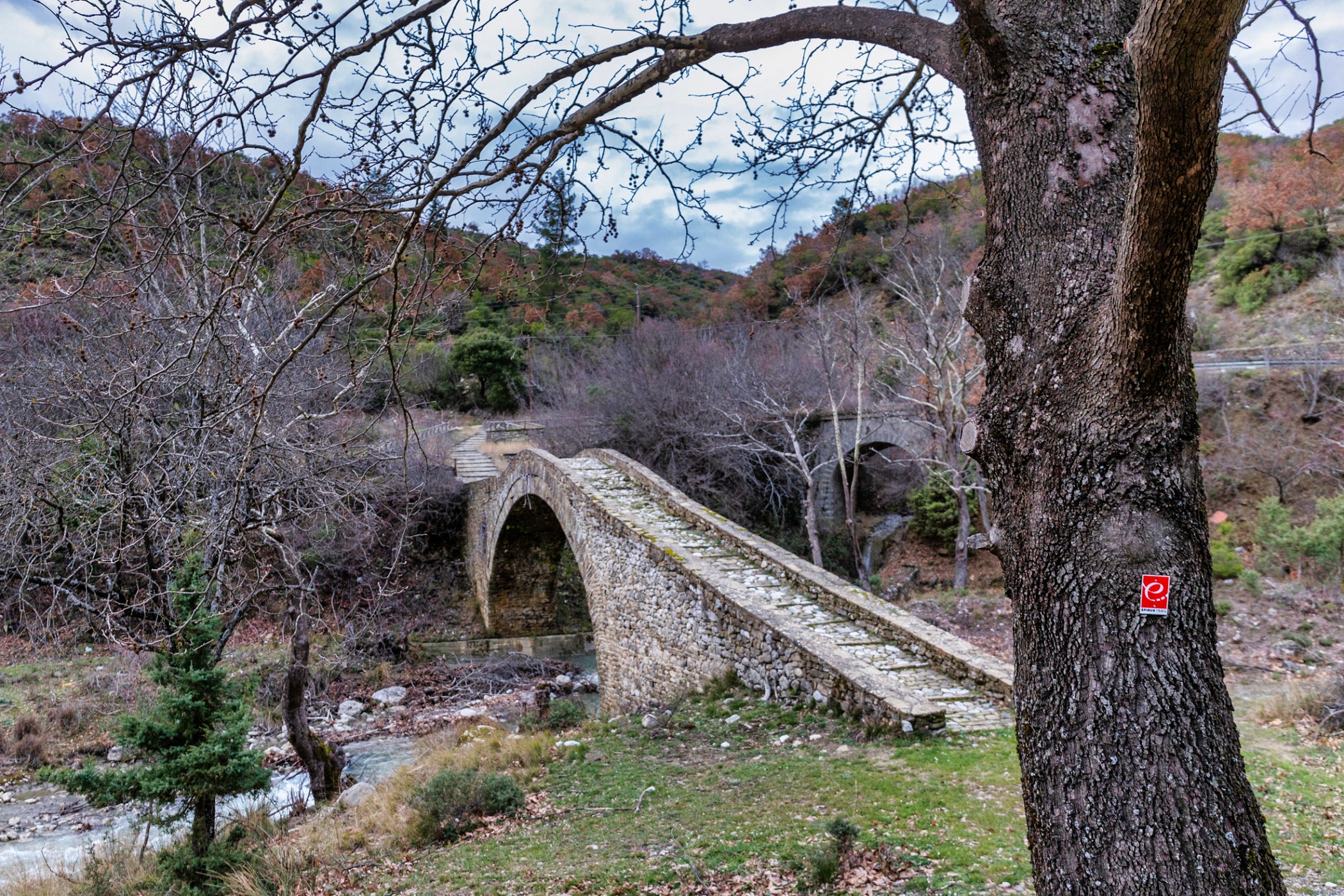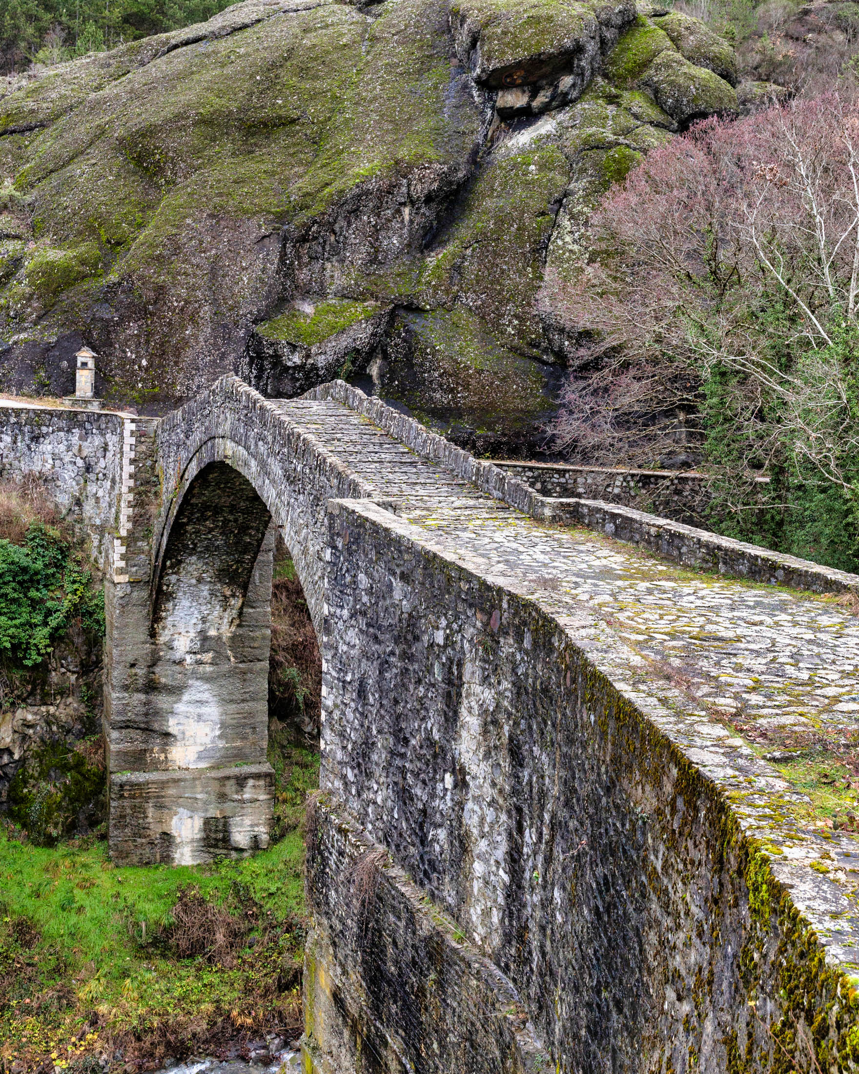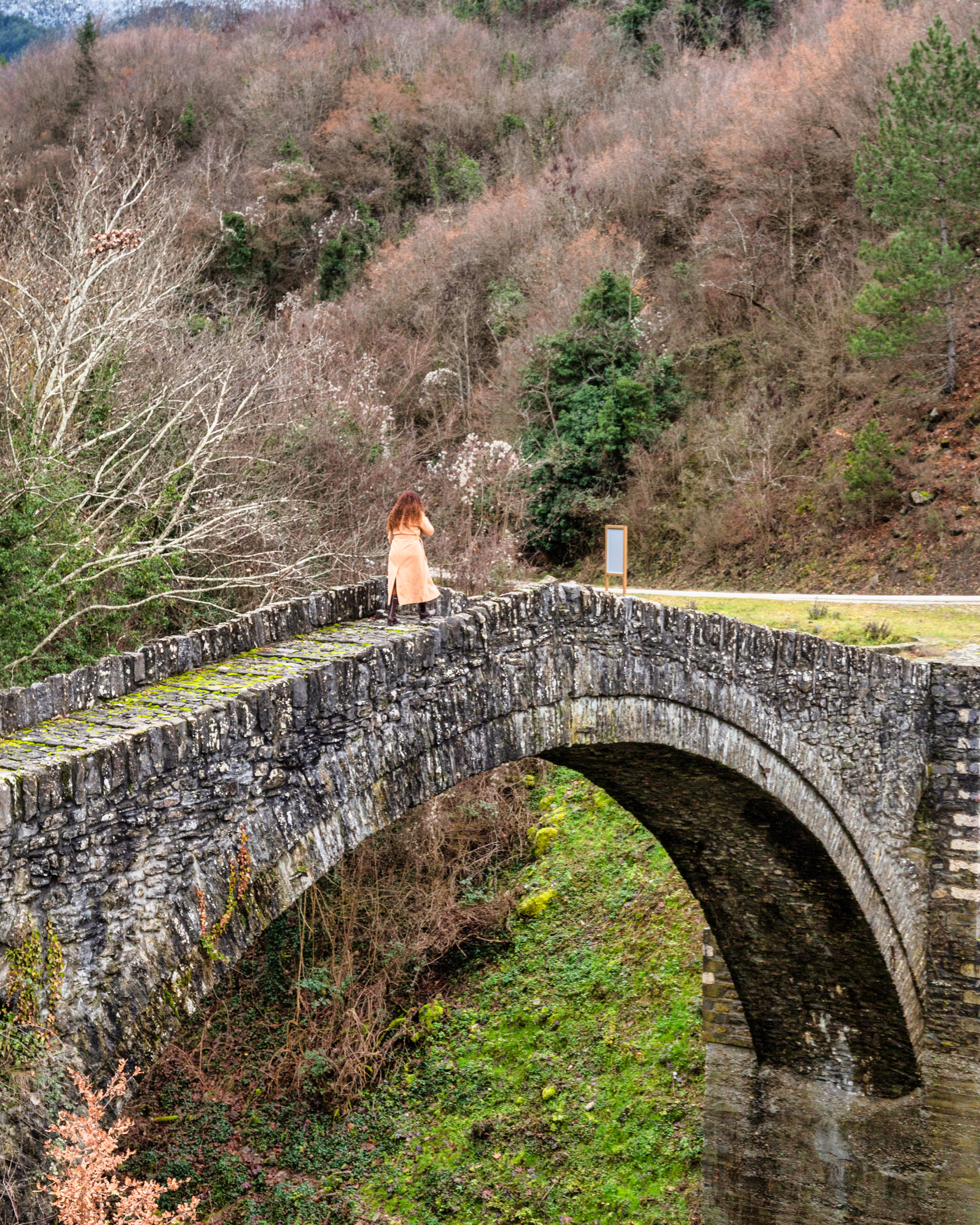 Άλλη μία εικόνα εντυπωσιακής, άγριας ομορφιάς στο γεφύρι αυτό, το οποίο υψώνεται πολλά μέτρα πάνω από έναν παραπόταμο του Σαραντάπορου, με τη μοναδική του καμάρα –πλέον σώζεται η μία από τις δύο αρχικές– να φτάνει σε άνοιγμα τα 20,50 μέτρα.