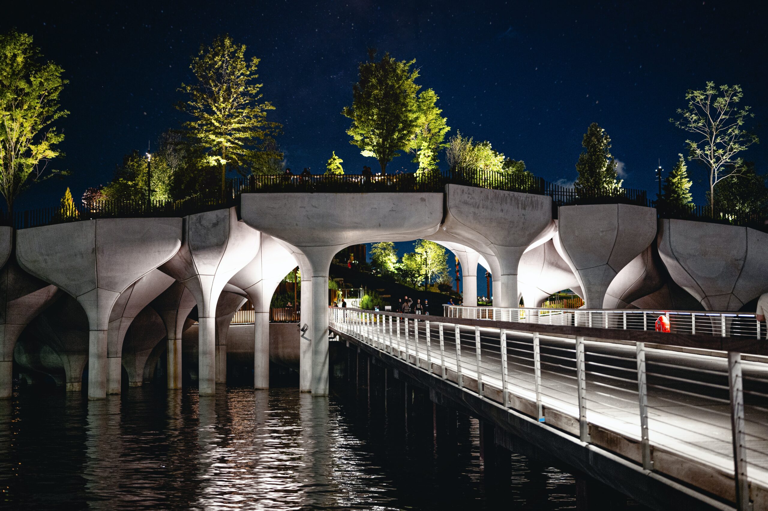 Πρόκειται για το Little Island, ένα δημόσιο πάρκο που στις 21 Μαΐου ετοιμάζεται να γιορτάσει τα 2 χρόνια παρουσίας του στο χώρο που κάποτε καταλάμβανε η Αποβάθρα 54, μία από τις 100 περίπου που βρίσκονταν κατά μήκος του πλέον πολυσύχναστου κατά τον 19ο αιώνα λιμανιού της Αμερικής. Μεταξύ της διάσημης αγοράς τροφίμων Chelsea Market και του θεαματικού μουσείου σύγχρονης τέχνης Whitney Museum of American Art, με έκταση 11.000 τ.μ., πανέμορφους κήπους, μονοπάτια, γκαζόν, παιδική χαρά και δικό του αμφιθέατρο, είναι ένα τέλειο, πολυεπίπεδο τετράγωνο που σχεδόν ίπταται, αφού ο καινοτόμος σχεδιασμός του το κάνει να στηρίζεται σε κολώνες που βυθίζονται στο ποτάμι, σαν μια καταπράσινη σχεδία που έχει ρίξει άγκυρα στις όχθες του Hudson River.