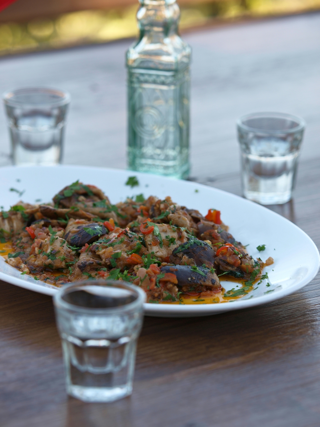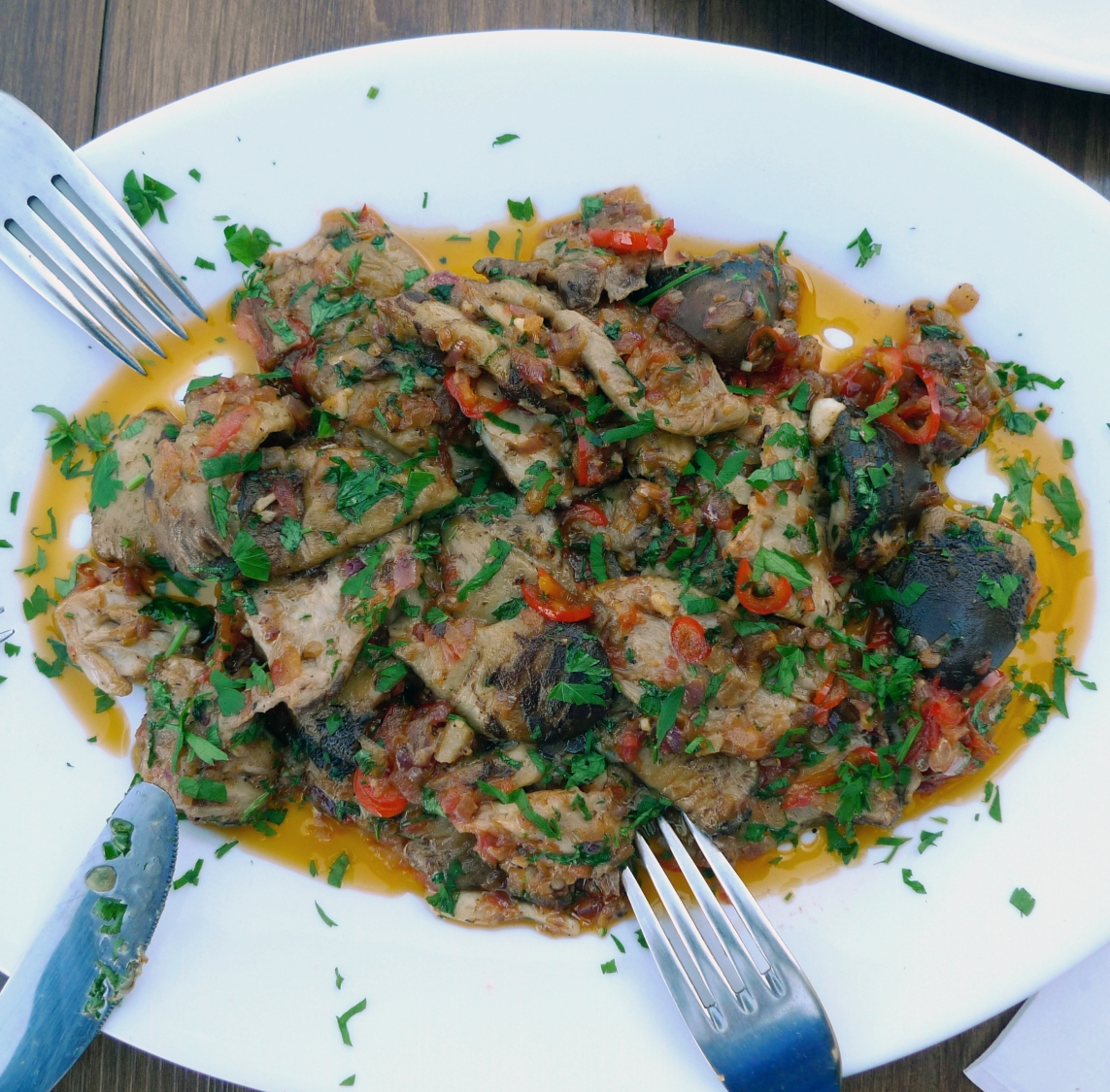 Μετά το επιτυχημένο κυνήγι των μανιταριών, η συντροφιά βρέθηκε γύρω από το τραπέζι του Στεφανή στο εστιατόριό του στον Άγιο Γεώργιο, για να ζήσουμε και γευτούμε τη μεταφορά της ιδεολογίας του τροφοσυλλέκτη ανθρώπου στους μοντέρνους καιρούς μας. Δέσμιοι των τωρινών μας προκαταλήψεων, θα φανταζόμασταν ότι το τραπέζι μας θα ήταν «χωριάτικο» και «φτωχικό», ενώ στην πραγματικότητα ήταν πολυποίκιλα «γκουρμέ» και πλούσιο. Είναι, γιατί το πολυτελές, σήμερα, είναι το φυσικό, το αυθεντικό, το εποχικό, το χειροποίητο, το κοντινό. Έτσι, τα ταπεινά χόρτα παίρνουν άλλες γευστικές διαστάσεις εδώ, καθώς έρχονται ως διαδοχικές εκπλήξεις, όπως τα αβγά μάτια επάνω σε σπανάκι και «παζί», όπως λένε εδώ τα λάπαθα, ή οι «γαϊδοουρές» – που στη Κρήτη τα αποκαλούν «γένια του τράγου» και είναι άγρια χόρτα βαπτισμένα στο κουρκούτι και τηγανισμένα, που σερβίρονται πασπαλισμένα με ψιλοκομμένη ντομάτα και ξινοτύρι. Και φυσικά μανιτάρια φρικασέ.