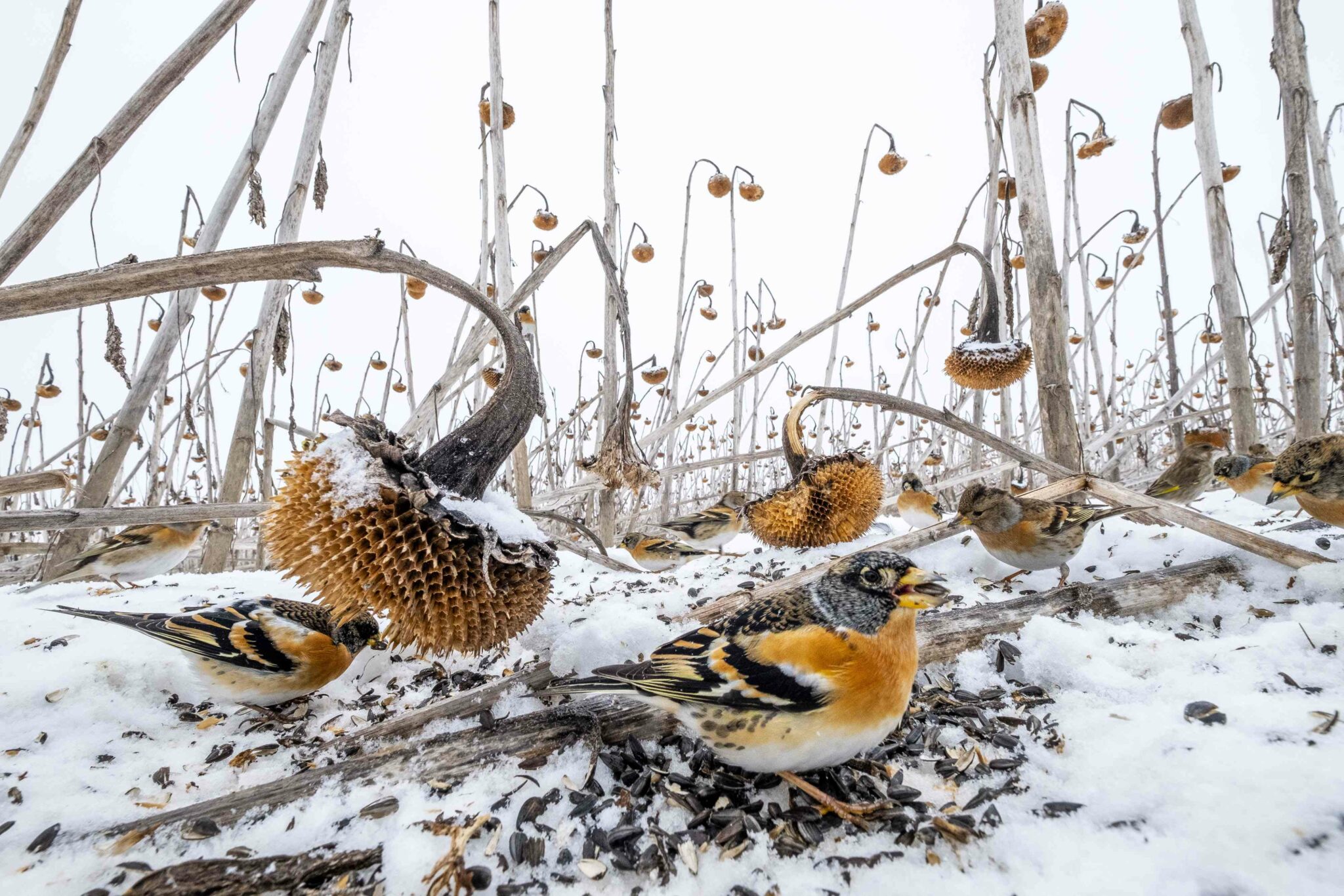 Ένα μεγάλο χωράφι με ηλιοτρόπια δεν θερίστηκε εξαιτίας της στάθμης του νερού και προσέλκυσε χιλιάδες είδη πουλιών.