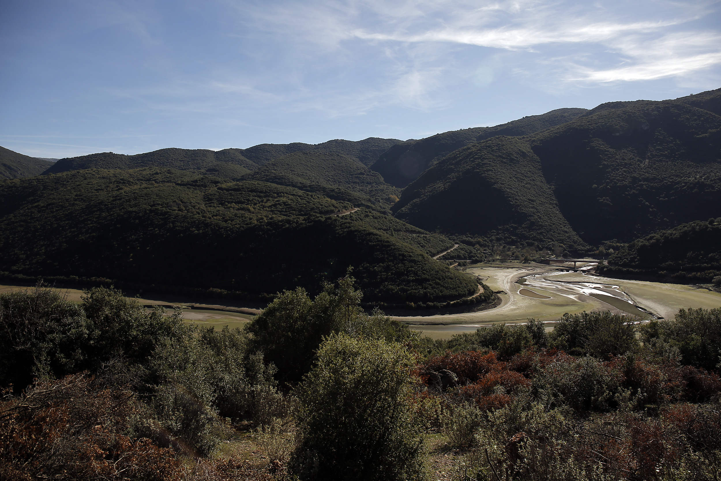 Η δεξιόστροφη πορεία από το φράγμα μέχρι το ανατολικότερο άκρο της λίμνης, είναι σχεδόν εξ ολοκλήρου δίπλα στη βόρεια όχθη της. Κανένας λόγος βιασύνης ή γρήγορης οδήγησης δεν υφίσταται, καθώς η χαμηλή ταχύτητα, τα ανοιχτά παράθυρα στο όχημα και οι συχνές στάσεις, δίνουν όλη την ταξιδιωτική αίσθηση στη συγκεκριμένη περιοχή. Νωρίς το χειμώνα, περίοδος της δικής μου επίσκεψης, η στάθμη είναι χαμηλή, μπορεί να φτάσει μέχρι τα 400 μέτρα, 20 μέτρα χαμηλότερα από τη μέγιστη μετά από μια βροχερή και χιονισμένη χειμερινή περίοδο. Οι χωμάτινες όχθες έχουν μια μπεζ απόχρωση, το χώμα είναι στεγνό και σφιχτό από το ζεστό καλοκαίρι που προηγήθηκε.