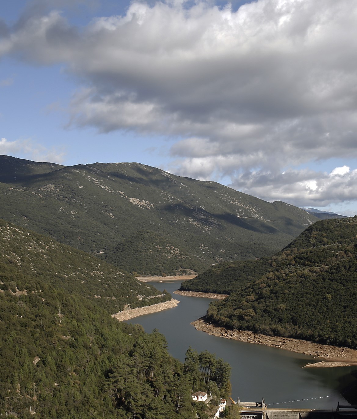 Ανάμεσα στα Λαγκαδινά βουνά και στο Αφροδίσιο όρος, κυριολεκτικά στο μέσο της Πελοποννήσου, στην ορεινή Αρκαδία, βορειοδυτικά της Βυτίνας και περιτριγυρισμένη από μικρά, παραδοσιακά και ιστορικά χωριά, τροφοδοτημένη κυρίως από τα νερά του ποταμού Λάδωνα, η ομώνυμη τεχνητή λίμνη στολίζει το αυθάδες φυσικό ανάγλυφο της περιοχής. Έχοντας στρίψει δεξιά, ψηλά πάνω από τα Τρόπαια, ακολουθώντας τις πινακίδες προς το φράγμα, προς στιγμή χάνεται η αίσθηση του προσανατολισμού, οι συνεχείς στροφές μετακινούν τις σκιές από το φως του ήλιου αριστερά – δεξιά του αυτοκινήτου, ο ορίζοντας, με τις κορυφές των γύρω βουνών, μοιάζει να μετακινείται σε κάθε καμπή του δρόμου. Τελικά, μετά από λίγα χιλιόμετρα, όπως στα περισσότερα μέρη σε αυτή τη μικρή αλλά ατίθαση χώρα, ένα συγκεκριμένο σημείο του δρόμου βάζει τέλος σε αυτό το ακίνδυνο βέρτιγκο εμφανίζοντας κάτω, χαμηλά, τη μεγαλοπρέπεια της νίκης των νερών έναντι του εδάφους.