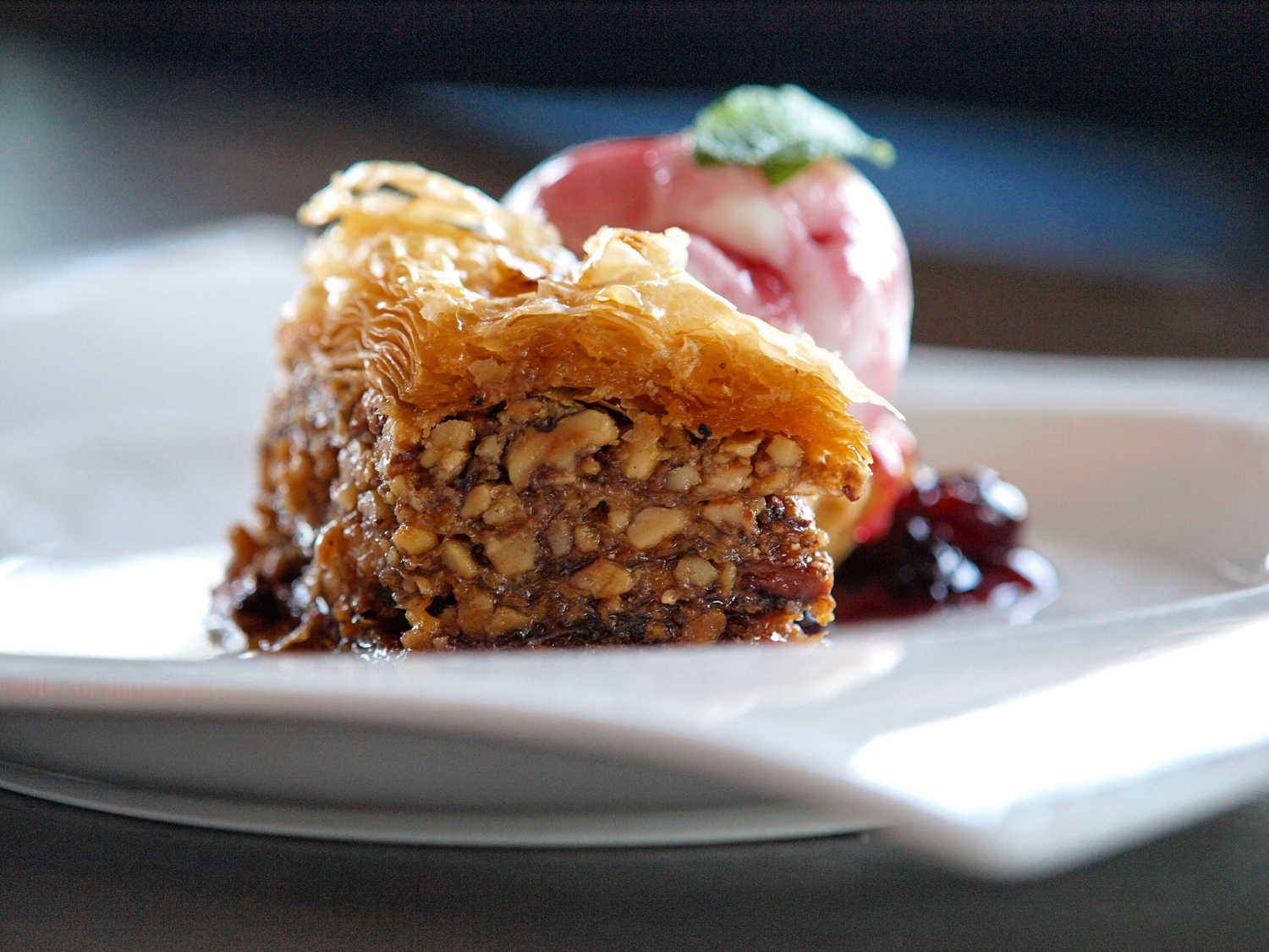 Για τον φημισμένο γιαννιώτικο μπακλαβά η Μόνικα χρησιμοποίησε ένα κιλό φύλλο, μισό κιλό αγελαδινό βούτυρο και ένα κιλό ξηρούς καρπούς, καρύδια και αμύγδαλα. Αυτό είναι τελικά το μυστικό του καλού μπακλαβά; Η πλούσια γέμιση ξηρών καρπών; Σίγουρα παίζουν κύριο ρόλο, αλλά η Μόνικα προκρίνει τα πολλά φύλλα. Στρώνει τέσσερα, βουτυρωμένα μεταξύ τους με λιωμένο βούτυρο, στον πάτο του ταψιού και τη γέμιση των ξηρών καρπών, στην οποία πρόσθεσε μια κουταλιά της σούπας κανέλα και μια ανάλογη κουταλιά γαρύφαλλο τριμμένο, και τη σκεπάζει με μια δέσμη φύλλων, μέχρι να δημιουργήσει ένα παχύ σώμα μπακλαβά.