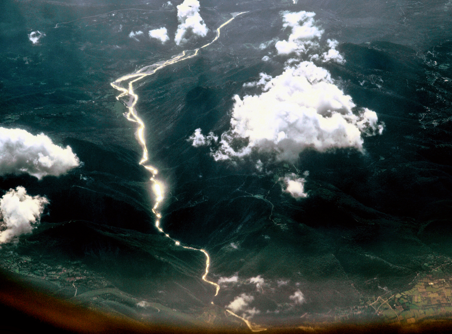 Κατ’ αρχάς το νερό, και μετά η γη και ο αέρας, όλα αυτά που τώρα μας περιβάλουν, ήταν για τους σοφούς προγόνους μας τα γενεσιουργικά συστατικά του σύμπαντος. Σκεφτόμαστε, ότι είναι και του κόσμου που τώρα διατρέχουμε, ειδικά αυτή τη στιγμή του ταξιδιού πάνω από τον Αμβρακικό που η επικράτεια των νερών απλώνεται και κατακυριεύει τα πάντα. Μύρια σχήματα και χρώματα, και η έντονη χαρακιά του Αράχθου που βγαίνει από τη βαθιά χαράδρα του, κάτω από το αναστημένο, για πάντα γοητευτικό, γεφύρι της Πλάκας, για να δημιουργήσει τη λίμνη Πουρναρίου δίπλα στην Άρτα. Η πόλη και η λίμνη μπαίνουν ταυτοχρόνως μέσα στο πλάνο του παραθύρου του αεροσκάφους της γραμμής.