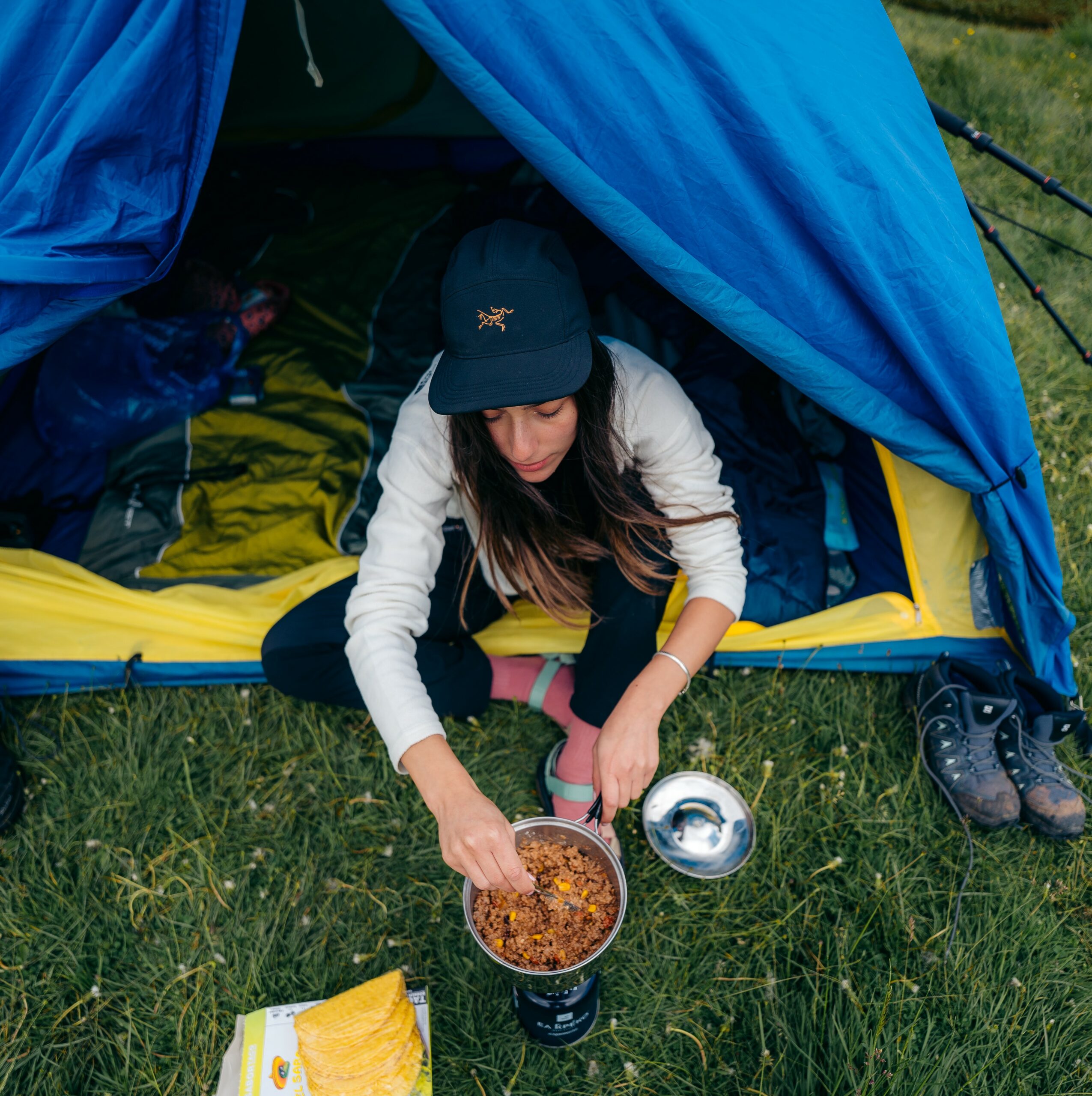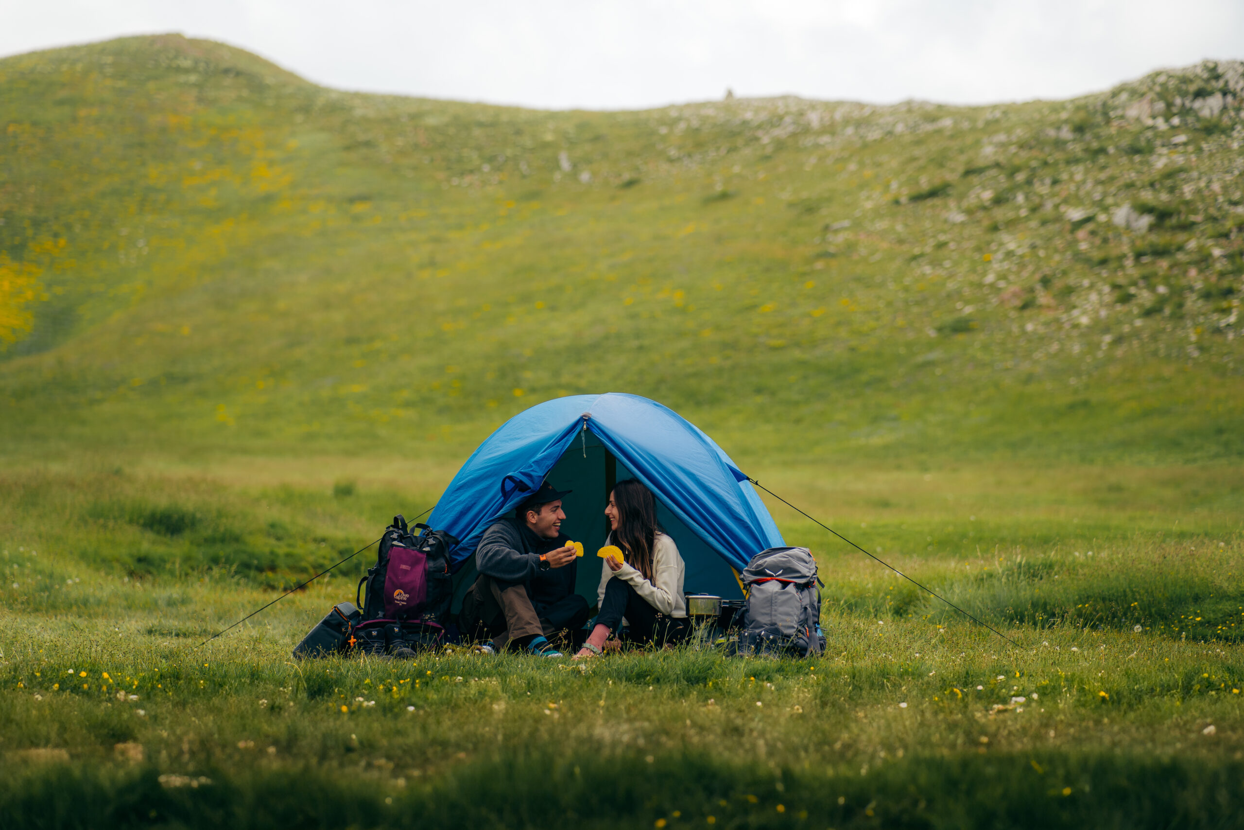 Αφού περπατήσαμε στη ράχη του οροπεδίου έχοντας πανοραμική θέα και εξερευνήσαμε κάθε μοναδικό στοιχείο του περιβάλλοντος, απομακρυνθήκαμε από τους μαιάνδρους και την καρδιά του οροπεδίου για να φτιάξουμε το «καταφύγιό» μας, κάτω από τον ξάστερο ουρανό του Μέγα Τράπου. Ξεκινήσαμε να μαγειρεύουμε το βραδινό μας με θέα τις απότομες κορφές. Αυτό το είδος δείπνου θα διαλέγαμε ξανά και ξανά παρά οποιοδήποτε άλλο σε κάποιο φανταχτερό εστιατόριο.