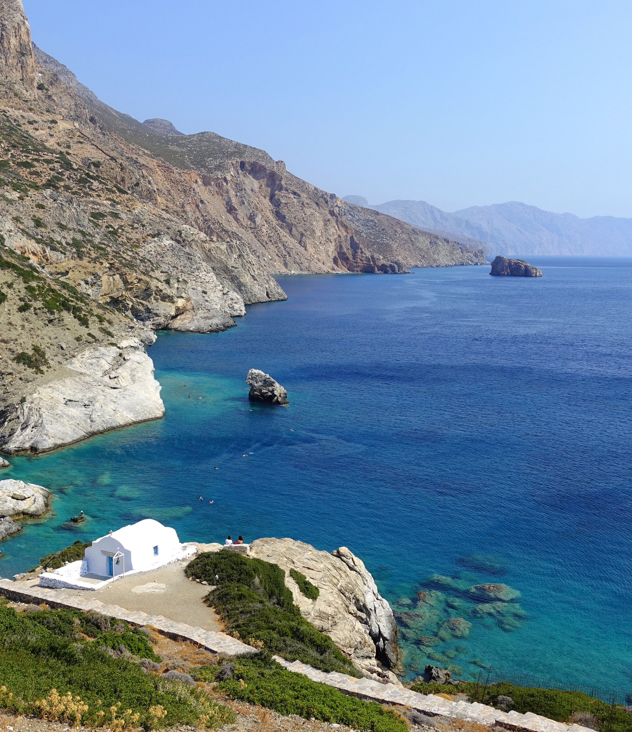 Αφήνοντας πίσω τη Νάξο και, όσο το καράβι συνεχίζει το ταξίδι του υπομονετικά μέσα από τις Μικρές Κυκλάδες, στο βάθος ξεπροβάλλει διακριτικά και άγρια η Αμοργός. Γνωστή ως το νησί -μούσα του Luc Besson χάρη στα καταγάλανα κρυστάλλινα νερά της που αποτέλεσαν πηγή έμπνευσης για την ταινία Le Grand Bleu, η πάντα αυθεντική Αμοργός είναι η ήσυχη εναλλακτική απέναντι στην βαβούρα του μαζικού τουρισμού. Επιβλητικά τοπία με φόντο όλες τις πλευρές του Αιγαίου, αλλά και μια γραφική μικρή Χώρα -κατά πολλούς η ομορφότερη των Κυκλάδων- δημιουργούν ένα ιδανικό σκηνικό που δύσκολα κανείς μπορεί να ξεχάσει.