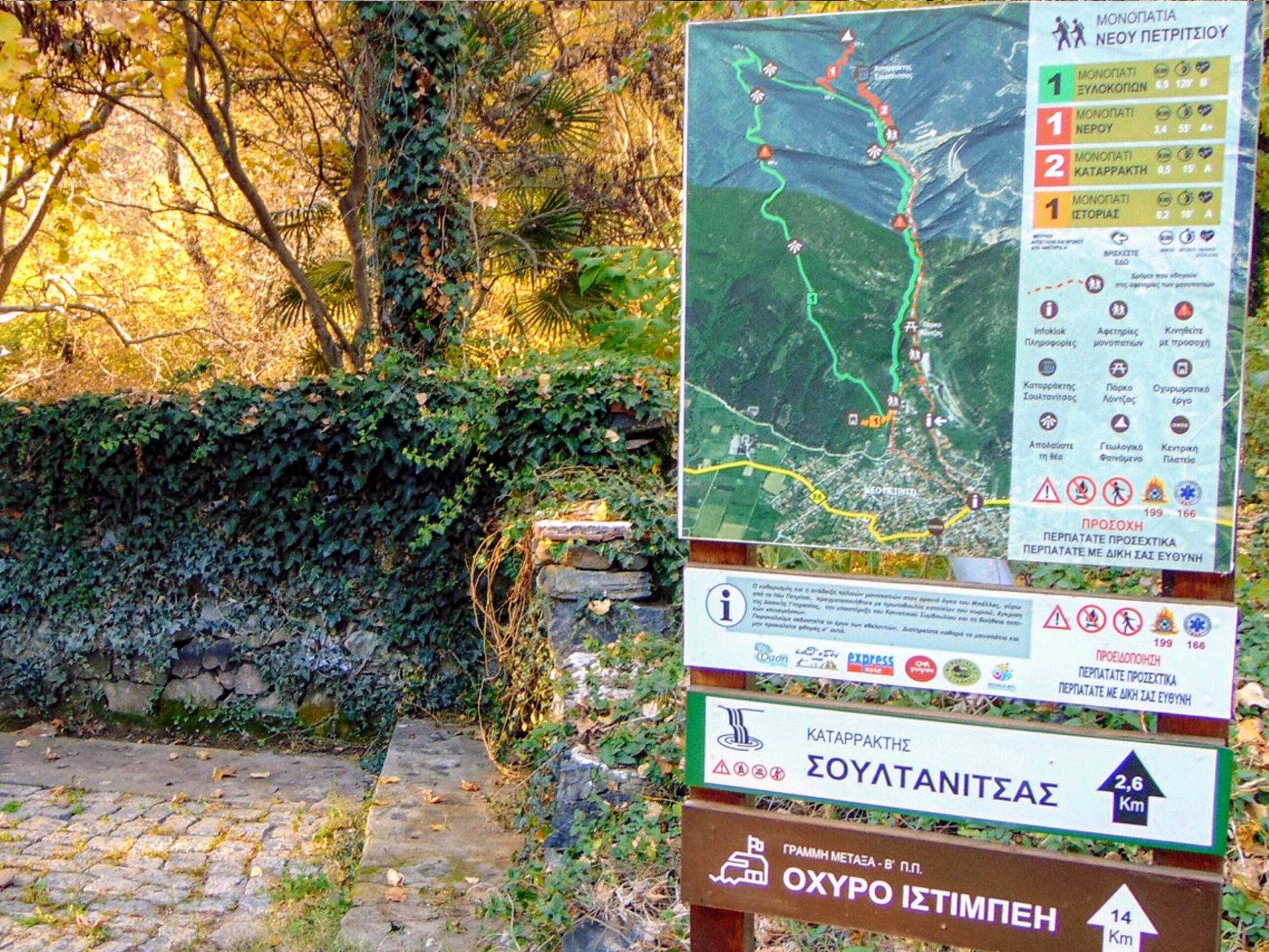 Ενημερωτικές πινακίδες για τις περιπατητικές διαδρομές, στο κέντρο του χωριού και στην είσοδο της κοιλάδας, παρέχουν όλες τις πληροφορίες για τους λάτρεις του hiking και όχι μόνο. Η πλέον κοντινή και εύκολη διαδρομή (3,5 χλμ) οδηγεί στον γραφικό καταρράκτη της Σουλτανίτσας, στο βάθος μιας καταπράσινης χαράδρας με αιωνόβια πλατάνια και πλούσια βλάστηση.