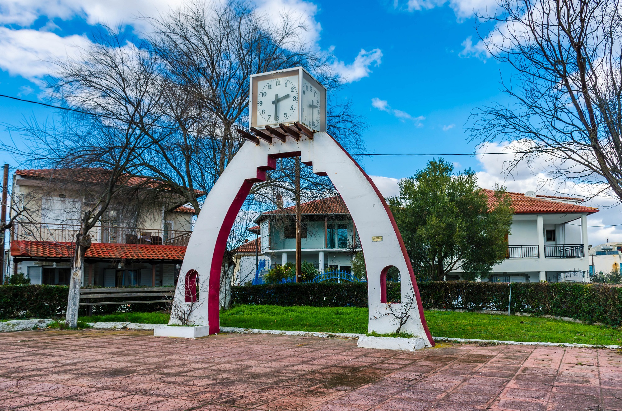 Βρίσκεται στο κέντρο του χωριού, στη μικρή μα κατάφυτη κεντρική πλατεία, έχοντας εγκατασταθεί σε μια επιβλητική αψίδα ύψους 4 μέτρων.