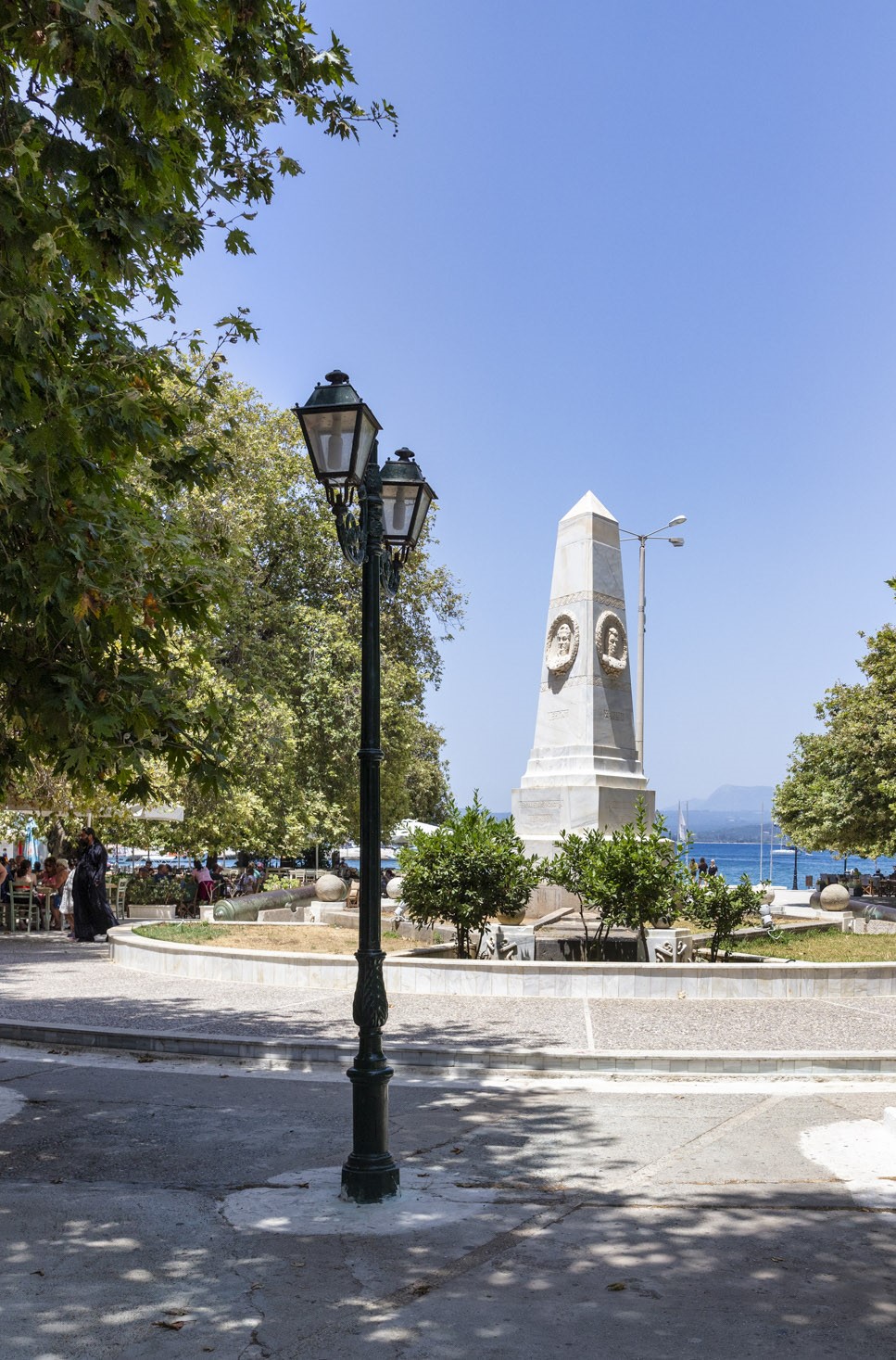 Βρισκόμαστε στην Πύλο της Μεσσηνίας, στην ωραία και μεγάλη πλατεία των Τριών Ναυάρχων, που είναι γεμάτη καφέ και εστιατόρια και περιστοιχίζεται από καταστήματα και υπηρεσίες. Ο κόλπος του Ναυαρίνου, ένα από τα μεγαλύτερα φυσικά λιμάνια του κόσμου –με βάθος που φθάνει έως και τα 50 μέτρα– απλώνεται απέναντί μας, με τη νησίδα Τσιχλί Μπαμπά να επιδεικνύει την τεράστια καμάρα της και το νησάκι Σφακτηρία να τον κλείνει προστατευτικά.