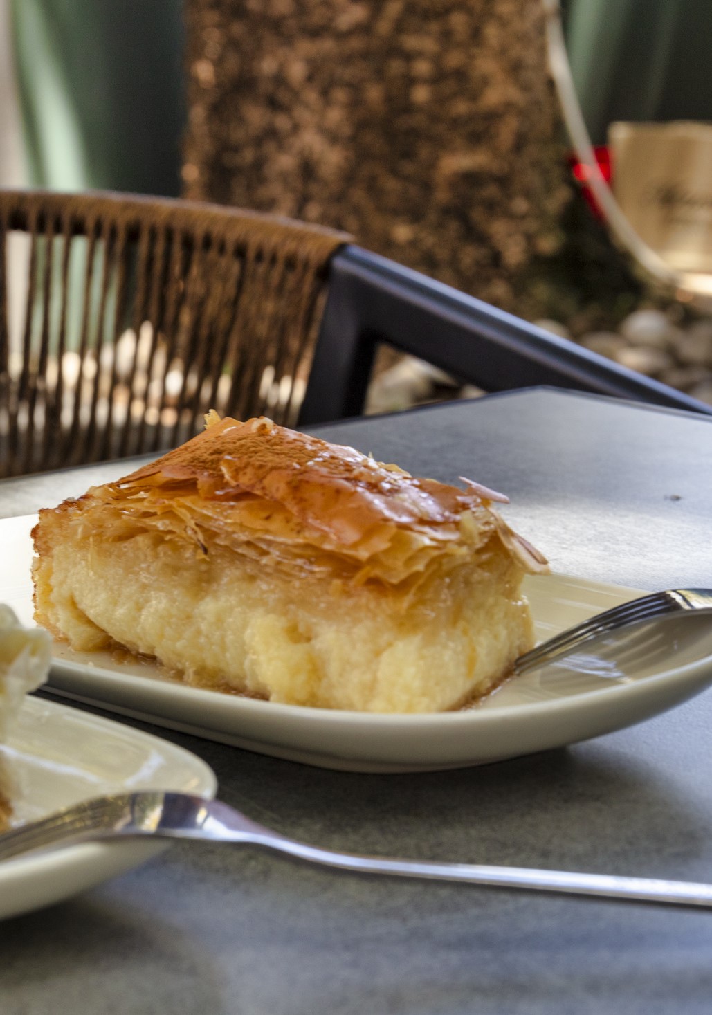 Καθισμένοι στη σκιά γιγάντιων πλατανιών απολαμβάνουμε τη δροσιά τους, αλλά και το πεντανόστιμο γαλακτομπούρεκο για το οποίο φημίζεται το ζαχαροπλαστείο «Κρίνος», διατηρώντας την ίδια συνταγή από το 1937. Γύρω μας, ντόπιοι καθισμένοι σε παρέες συζητούν για πολιτική, για τον καιρό, για μας τους τουρίστες που έχουμε αρχίσει να γεμίζουμε την κωμόπόλη τους.