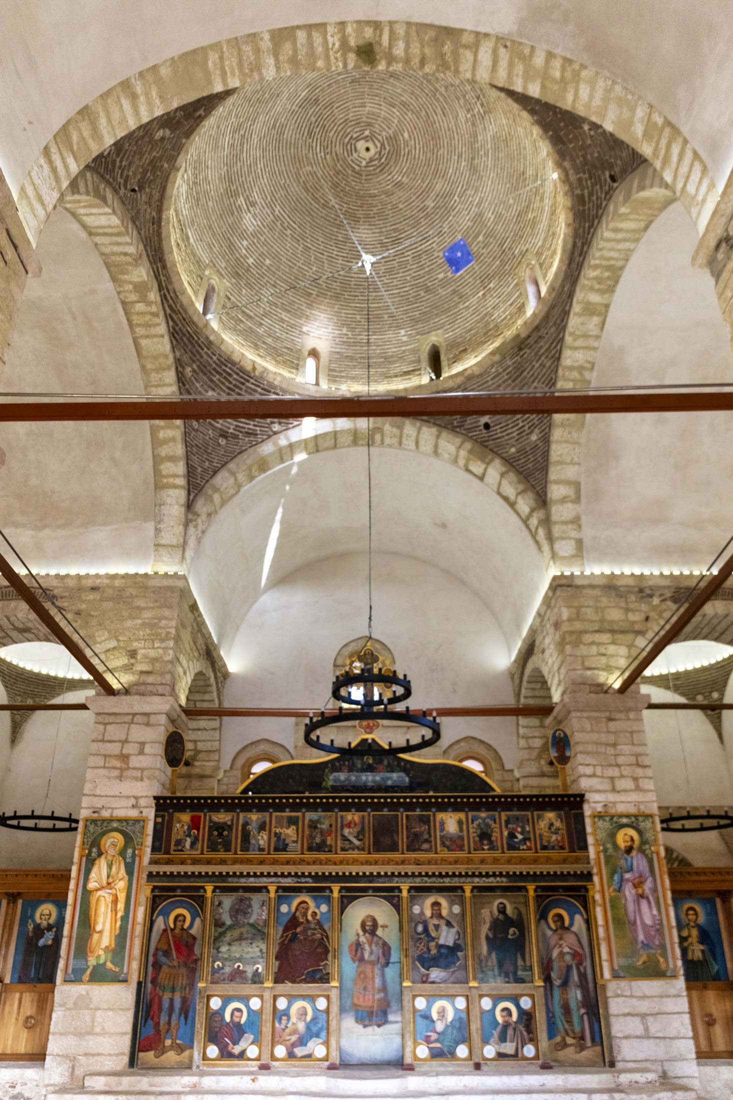 Το λιτό εσωτερικό του ναού είναι ιδιαίτερα ενδιαφέρον, καθώς αναδεικνύει τη συνύπαρξη της ορθόδοξης και της οθωμανικής αρχιτεκτονικής. Είναι, επίσης, υποβλητικό καθώς το καταυγάζουν δέσμες φυσικού φωτός, ενώ στο κέντρο βρίσκεται συντηρημένο ξύλινο τέμπλο, με εικόνες αγίων.