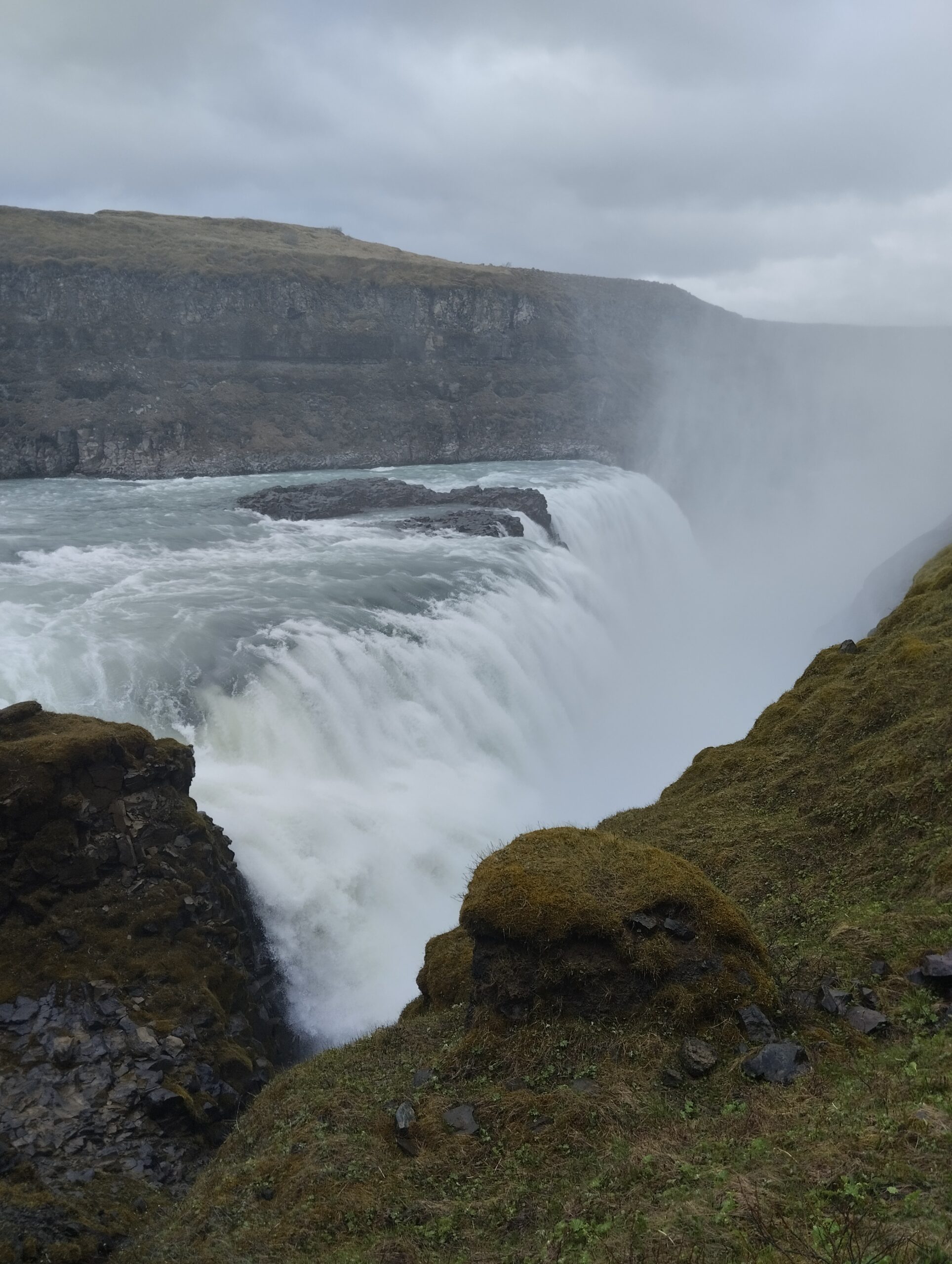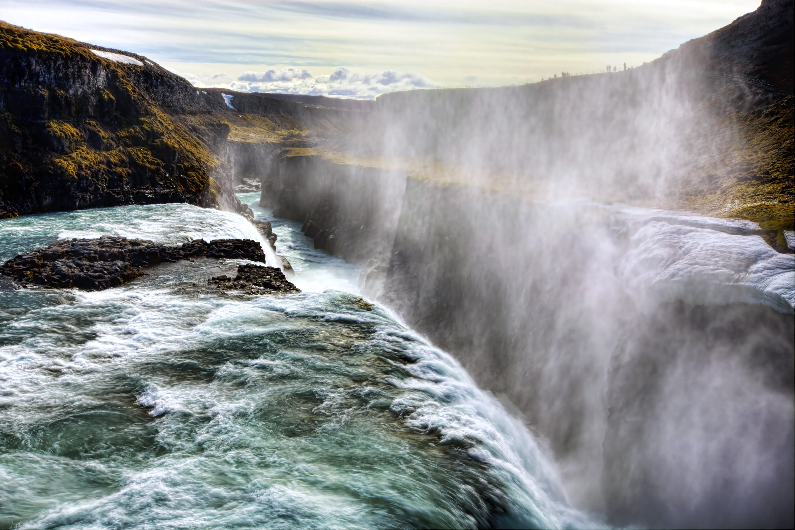 Τελευταίος σταθμός στον Χρυσό Κύκλο της Ισλανδίας ο σχεδόν εξωπραγματικός καταρράκτης Gullfoss. Η αλήθεια είναι πως πριν φτάσετε στο σημείο δύσκολα μπορείτε να φανταστείτε την ορμή και το μέγεθος του διασημότερου καταρράκτη της Ισλανδίας. Οι Ισλανδοί έχουν προνοήσει για αυτό φτιάχνοντας ένα ειδικό μονοπάτι που σας επιτρέπει να θαυμάσετε το μέγεθος του τεράστιου καταρράκτη από διαφορετικές οπτικές γωνίες και να πάρετε μια γεύση, αν θέλετε, πλησιάζοντας πολύ κοντά στο σημείο όπου τόνοι παγωμένου νερού από τον ποταμό Hvítá χύνονται από ύψος 30 μέτρων στο εσωτερικό μιας βαθιάς χαράδρας που από μακριά μοιάζει απλώς σαν μια σχισμή στο έδαφος.
