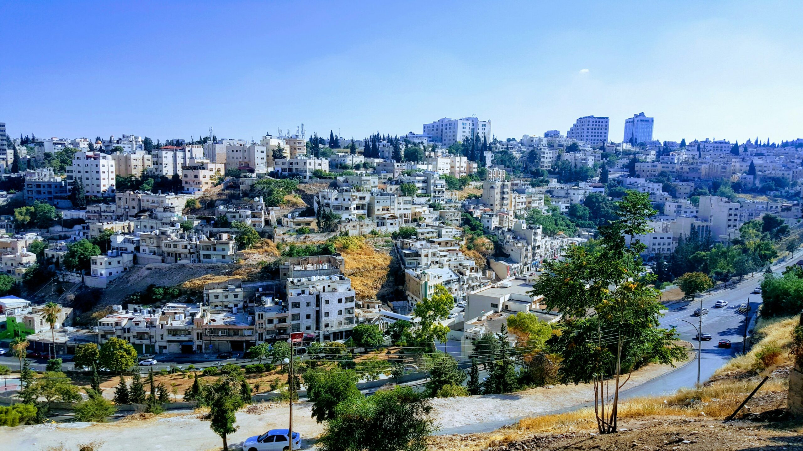 Μπαίνοντας στην πόλη, περνάμε από μία ακριβή συνοικία, όπου τα σπίτια είναι όλα καινούρια και με επένδυση λευκής πέτρας. Αυτή, εξάλλου, είναι και η χαρακτηριστική πέτρα που συναντάμε στην περιοχή. Μετά από σχεδόν 40 λεπτά, έχουμε ήδη φθάσει στο ξενοδοχείο. Το Fairmont Aman, επειδή η πόλη χωρίζεται σε ομόκεντρους κύκλους που ξεκινούν από το ιστορικό κέντρο, βρίσκεται στον 5ο όπου μαζί με άλλες, επίσης διεθνείς ξενοδοχειακές αλυσίδες, δημιουργούν μία γειτονιά με νέα, μοντέρνα ψηλά γυάλινα κτήρια. Από τον 13ο όροφο όπου βρίσκεται το δωμάτιο, παίρνω μία πρώτη εικόνα. Το πρώτο γεύμα στο Αμμάν είναι δείπνο και μάλιστα σε ένα από τα πιο γνωστά και δημοφιλή εστιατόρια της πόλης.