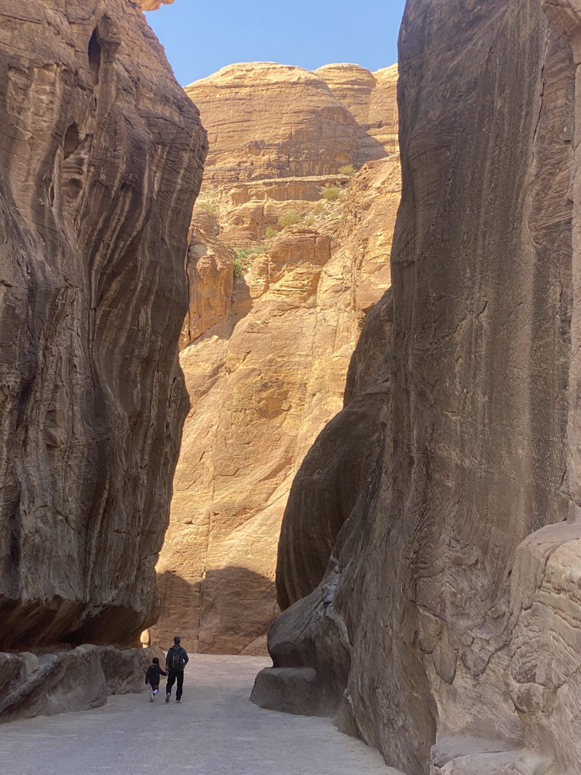 Είχα πολλές φορές δει σε φωτογραφίες και βίντεο εικόνες από αυτό το Mνημείο της Παγκόσμιας Πολιτιστικής Κληρονομιάς. Αποτελεί το σημαντικότερο αξιοθέατο της χώρας ολόκληρης και είναι κληρονομιά από τους αρχαίους Ναβαταίους του αραβικού λαού που έζησε στη νότια Ιορδανία. Έχουμε ξεκινήσει το περπάτημα και η μία έκπληξη διαδέχεται την άλλη. Οι κάθετοι πολύχρωμοι βράχοι που υψώνονται από πάνω μας δημιουργούν μία εικόνα μοναδικότητας και εντείνουν την ανυπομονησία για αυτά που θα ακολουθήσουν. Οι μικρές κοιλότητες που κάποτε αποτελούσαν ταφικά μνημεία σήμερα αποτελούν σημεία εξερεύνησης. Ο ξεναγός μας, ο Saleem, τον οποίο ακολουθούμε από την ώρα που πατήσαμε το πόδι μας στην Ιορδανία, μας εξηγεί και μας δείχνει τα σημεία στα οποία πρέπει να δώσουμε έμφαση. Παρατηρούμε τα απομεινάρια του πήλινου αγωγού με τον οποίο υδροδοτούσαν την πόλη.