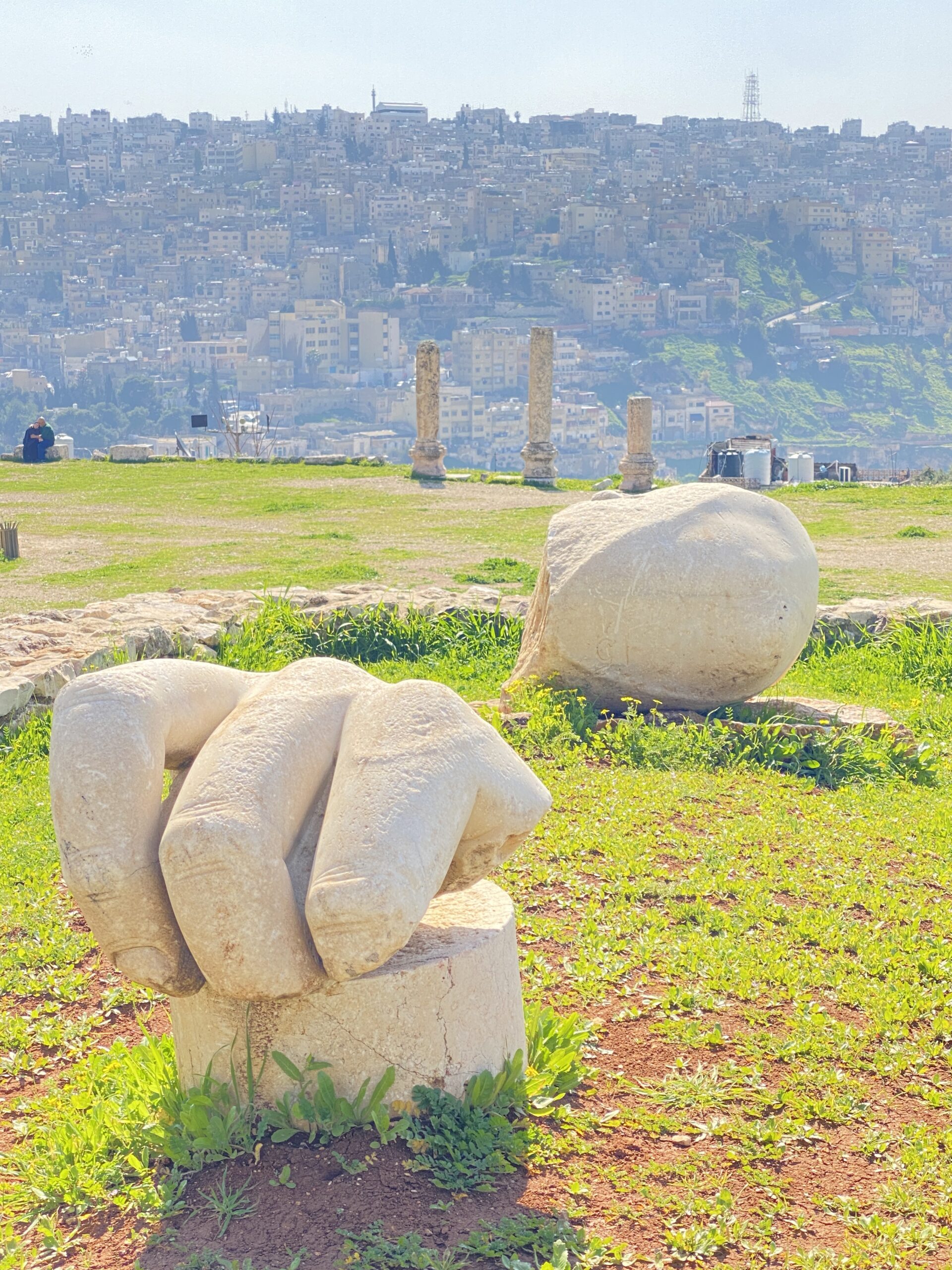Αφήνουμε πίσω μας τη Νεκρά Θάλασσα αλλά και το σημείο της βάπτισης του Ιησού και επιστρέφουμε στην πρωτεύουσα. Η επόμενη ημέρα είναι αφιερωμένη στην πόλη. Το πολύβουο κέντρο είναι το ιδανικό σημείο για να χαθείτε στα στενά του, να δοκιμάσετε νόστιμα τοπικά εδέσματα και να αγοράσετε μπαχαρικά, πολύχρωμα υφάσματα, διακοσμητικά. Εδώ, βρίσκω τον χρόνο να δοκιμάσω χυμό από ζαχαροκάλαμο -πολύ γλυκός, δεν μου άρεσε- αλλά και το εμβληματικό Knafa, το γνωστό και σε εμάς ως κιουνεφέ. Το Gebna, είναι μια πιτούλα με γίδινο τυρί και δυόσμο. Στο εστιατόριο αργότερα, δοκιμάσαμε Makluba, ένα πεντανόστιμο φαγητό με ρύζι, λαχανικά και κοτόπουλο. Τοποθετούνται σε στρώσεις και όταν είναι έτοιμο αναποδογυρίζεται σε ένα μεγάλο ταψί ώστε να μπορεί να σερβιριστεί. Ένα σημείο που επιβάλλεται να δεις κατά την επίσκεψη στο Αμμάν είναι ο ναός του Ηρακλή, ο οποίος χτίστηκε στα μέσα του 2ου αι. μ.Χ. Από εδώ εξάλλου, θα έχεις την ευκαιρία να δεις όμορφες οπτικές της πόλης.