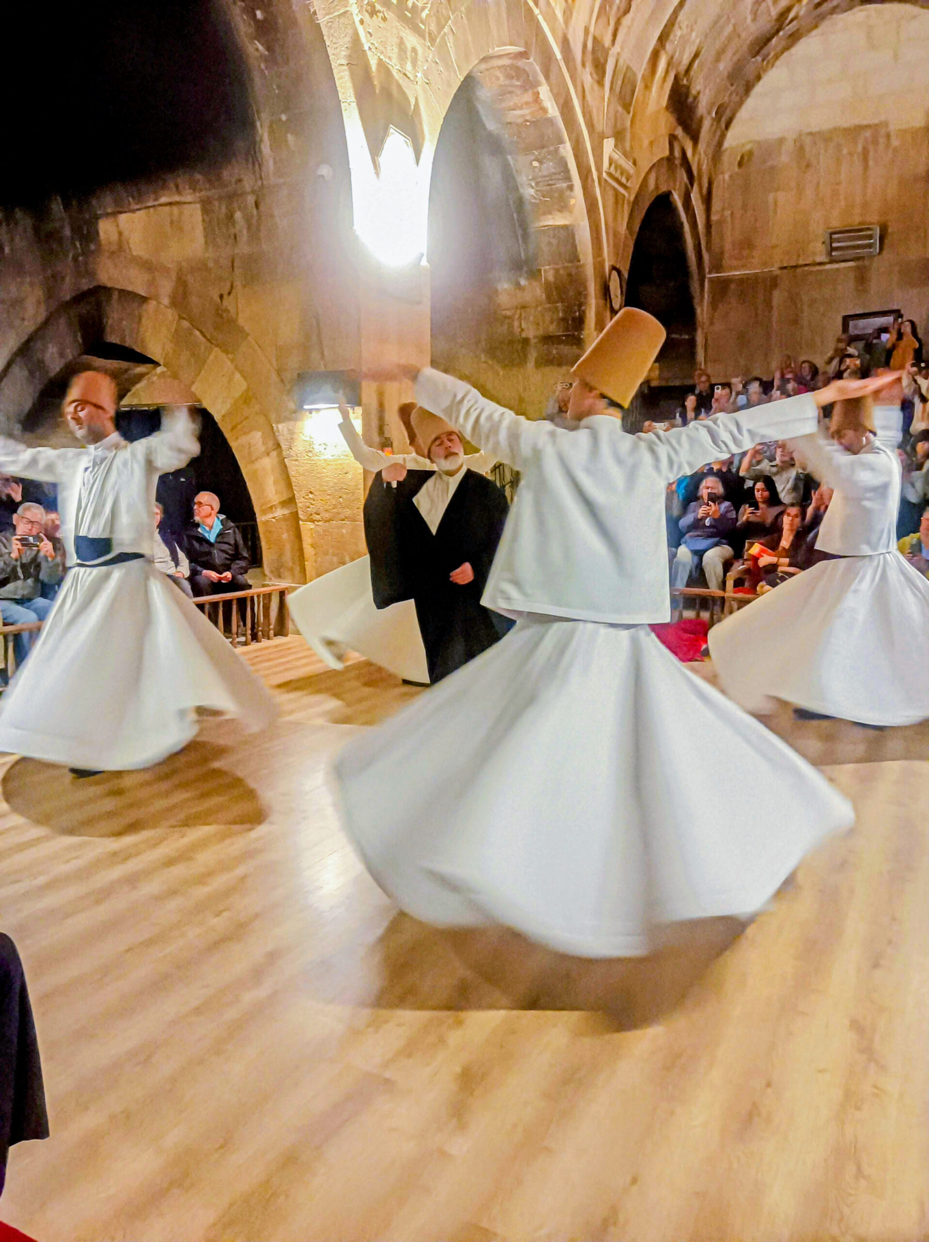 Κάνουμε μια στάση για καφέ και συνεχίζουμε στα πέριξ εμπορικά καταστήματα, αλλά και στην κλειστή αγορά που θυμίζει το Καπαλί Τσαρσί της Πόλης. Κάνοντας βόλτες στην παλιά πόλη, κάτω από την σκιά του χιονισμένο όρους Αργαίου, διαπιστώνει κανείς ότι η Καισάρεια είναι μια ζωντανή πόλη, όπου το παρελθόν ζει στο παρόν. Αργά το απόγευμα επιστρέφουμε στην Άβανο. Το τελευταίο μας βράδυ στην Καππαδοκία πάμε στο ιστορικό Saryhan Caravanserai, στα περίχωρα της Αβάνου, για να παρακολουθήσουμε τον χορό-προσευχή των περιστρεφόμενων Δερβίσηδων. Πρόκειται για κτίριο του 1249 που στο παρελθόν λειτούργησε ως Καραβάν Σαράι, δηλαδή ως χάνι για τους εμπόρους που έκαναν τον Δρόμο του Μεταξιού. Εδώ λοιπόν, μέσα σε ένα περιβάλλον απόλυτα μυστικιστικό, παρακολουθούμε τον χορό των Δερβίσηδων, που παραπέμπει περισσότερο σε θρησκευτική τελετή, παρά σε ψυχαγωγικό θέαμα, καθώς ο χορός συμβολίζει τον εξαγνισμό του ανθρώπινου πνεύματος. Φεύγοντας νιώθω σαν να έχω κάνει ένα ταξίδι στο χρόνο. Η βραδιά μας κλείνει με δείπνο στο ξενοδοχείο.