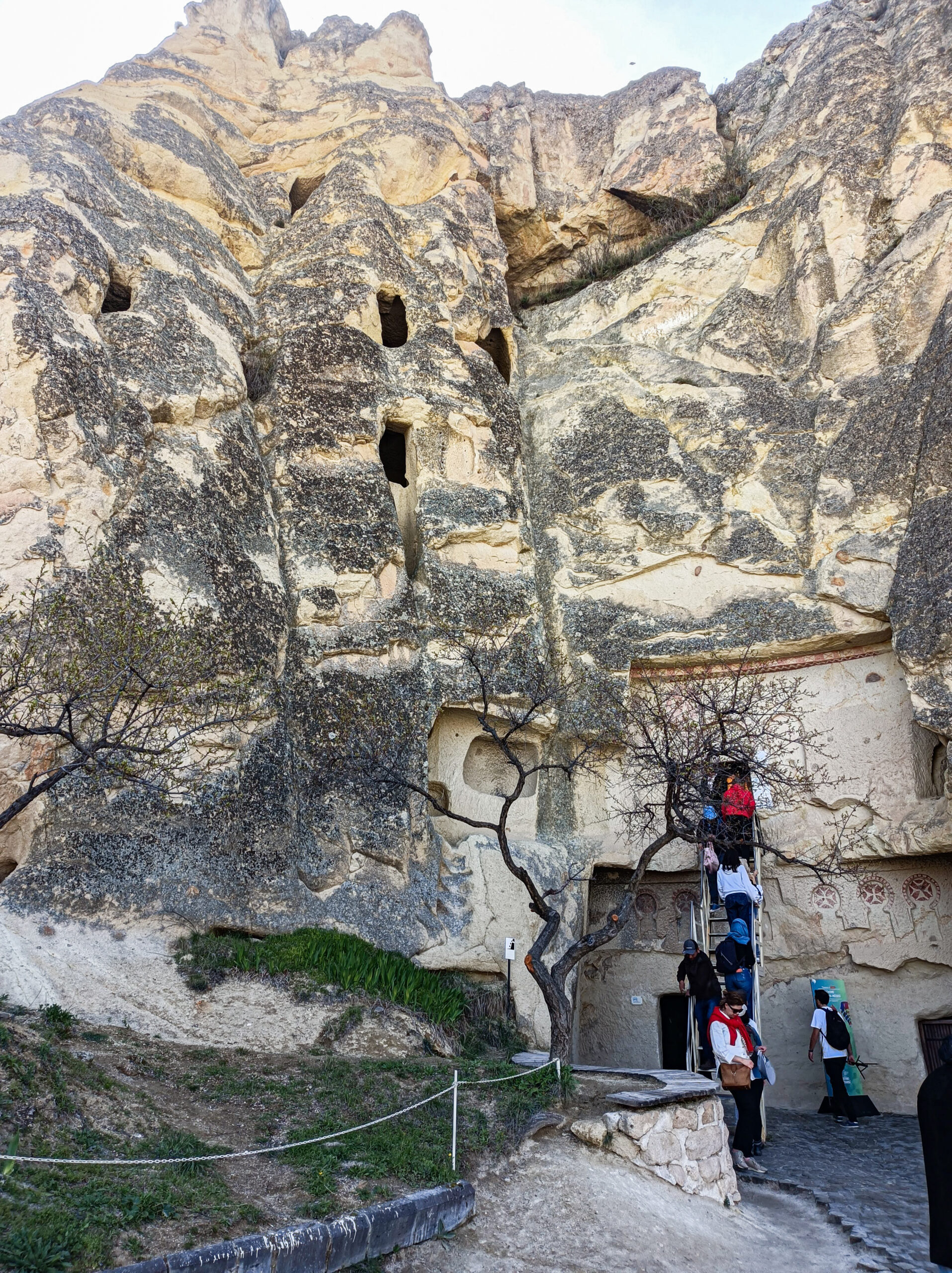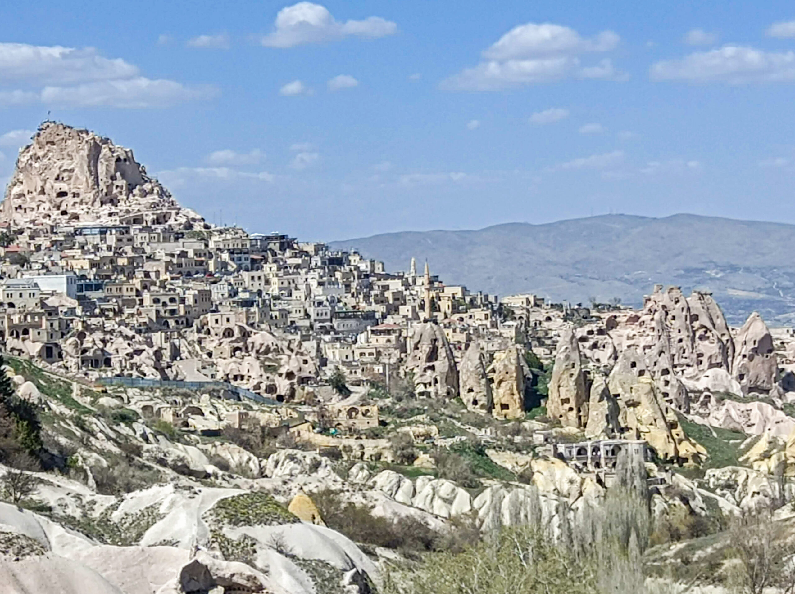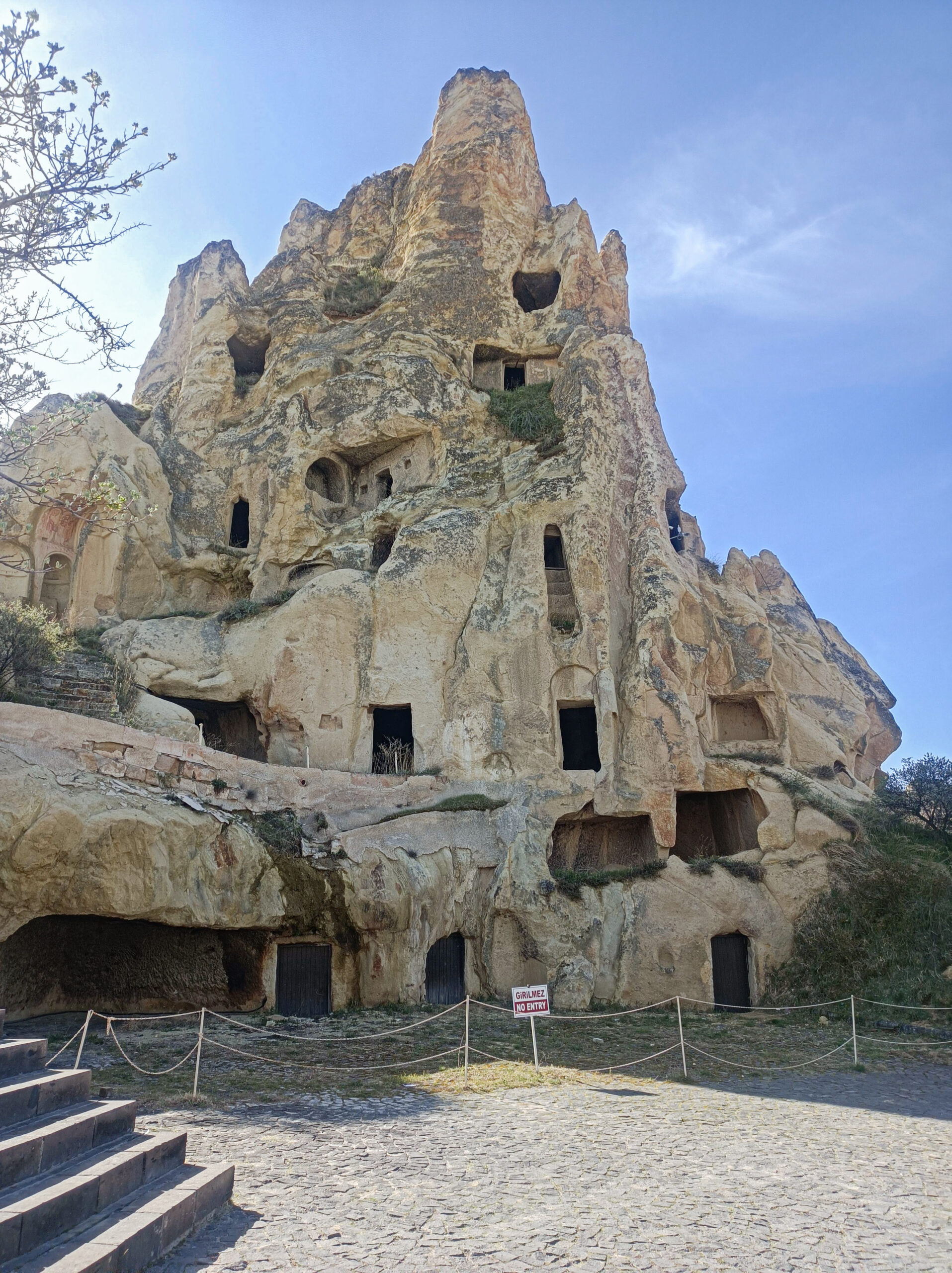 Φεύγοντας από το Γκιόρεμε κατευθυνθήκαμε προς το κάστρο Uchisar, το οποίο αποτελείται από ένα χωριό στριμωγμένο γύρω από την βάση ενός τεράστιου βράχου που αποτελούσε την Ακρόπολη της πόλης. Το Ushinar ιδρύθηκε στην περιοχή που περνούσε ο Περσικός Βασιλικός Δρόμος, ο οποίος ιδρύθηκε κατά την Περσική Δυναστεία των Αχαιμενιδών και εξελίχθηκε, κατά την περίοδο των Σελτζούκων, σε μια από τις κύριες αρτηρίες του Δρόμου του Μεταξιού. Η θέα της κοιλάδας από την κορυφή είναι εντυπωσιακή. Κάνουμε ένα διάλειμμα για φαγητό σε ένα τοπικό εστιατόριο και δοκιμάζουμε Gozleme (παραδοσιακή πίτα με λεπτή ζύμη ψημένη σε πλάκα με γέμιση από τυρί, σπανάκι, πατάτα ή κιμά).