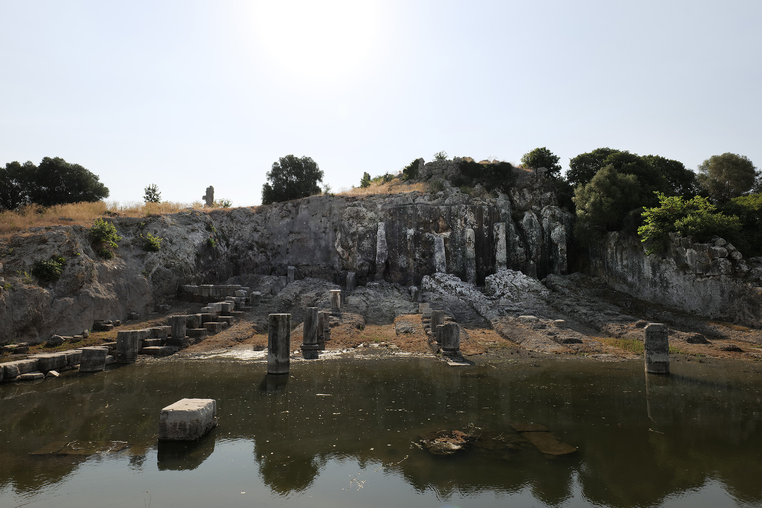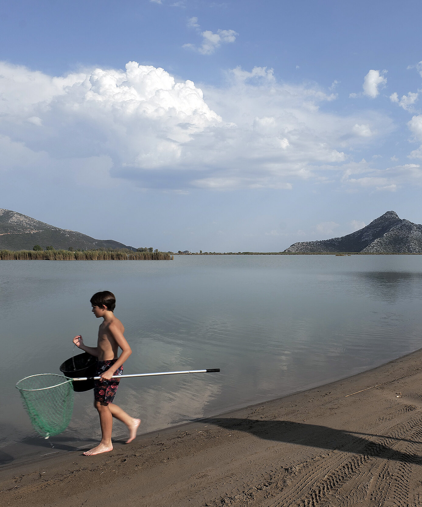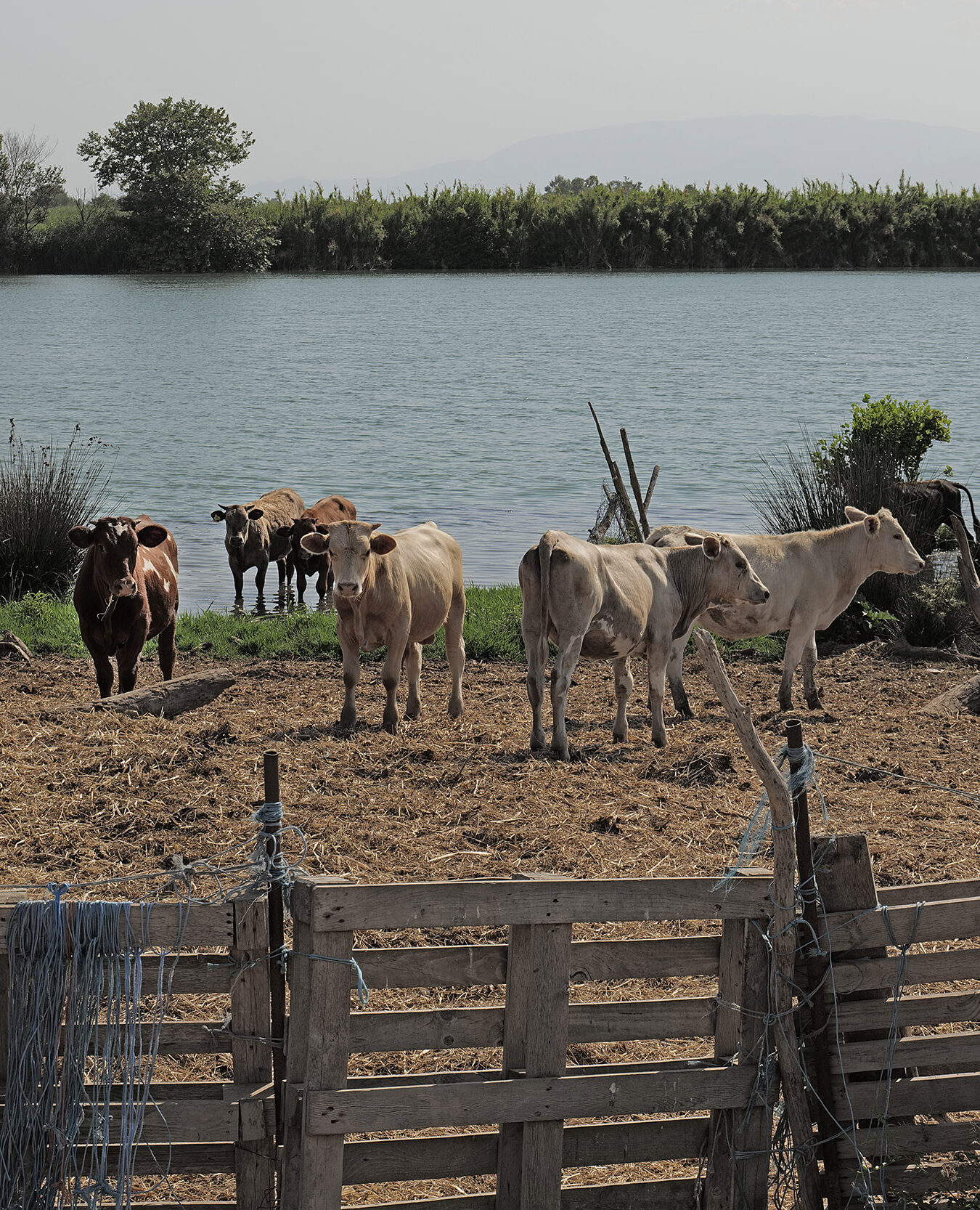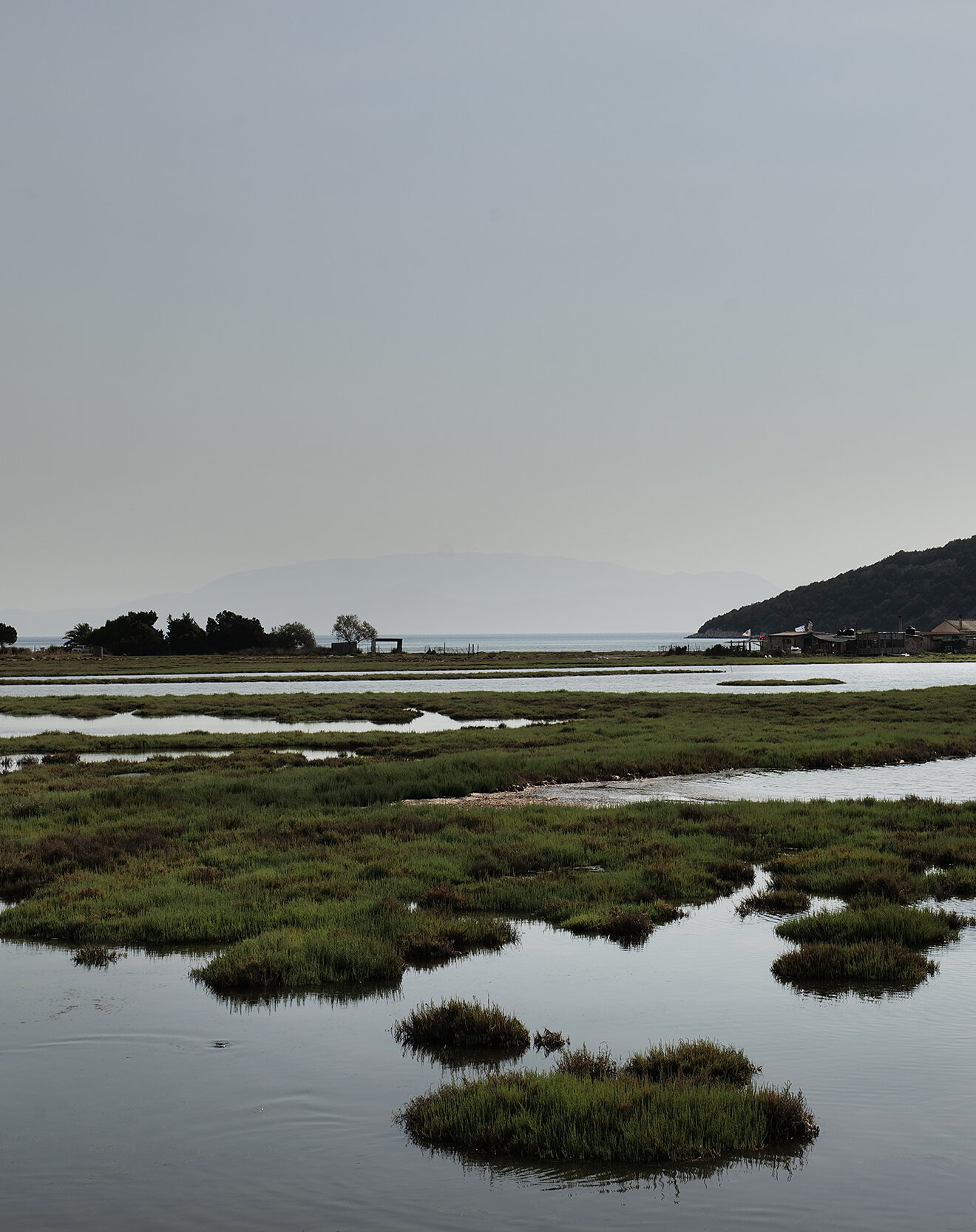 Φθάνοντας πια στο τέλος του ταξιδιού, η μυρωδιά του ιωδίου αλλά και της θαλασσινής αύρας του Ιονίου, μπλέκονται με το χώμα, την κοπριά από τα λιγοστά οικόσιτα κοπάδια τα οποία βρίσκονται διάσπαρτα στις ατέλειωτες ευθείες των δρόμων αριστερά και δεξιά του ποταμού και της υγρασίας από τα ποτισμένα χωράφια. Το νερό μπλέκει διαρκώς στην εικόνα με τις στενές λωρίδες γης που το οριοθετούν. Η αντανάκλαση του ουρανού στα λεία σαν καθρέφτες λιμνάζοντα ύδατα, διπλασιάζουν τον ορίζοντα και τα χρώματά του.