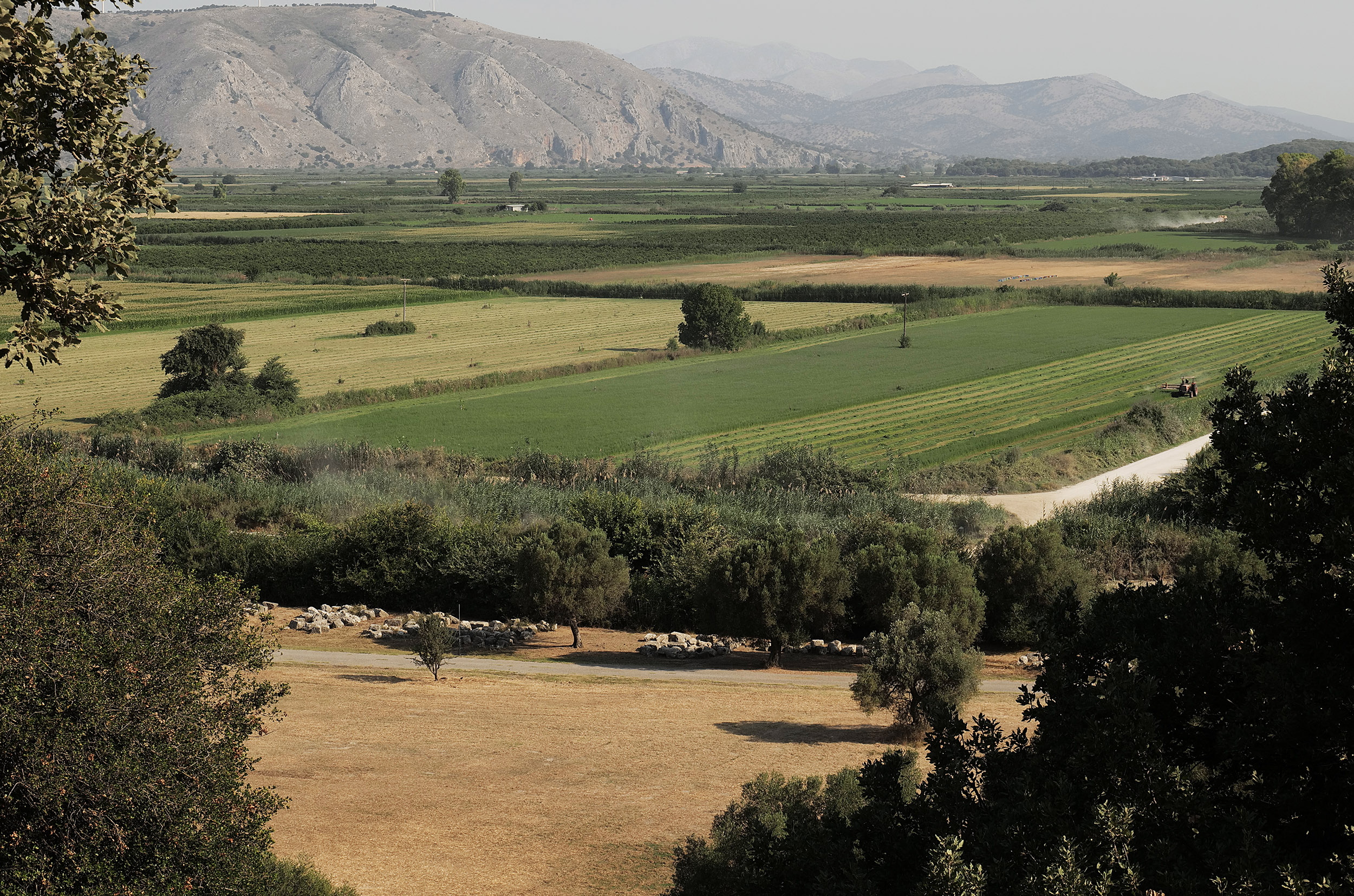 Είναι αρχές Ιουλίου και η παραγωγή βρίσκεται περίπου στο 50% της σοδειάς του έτους, μού λέει ο Λάμπρος καθώς μανουβράρω με την καθοδήγησή του το αυτοκίνητο ανάμεσα στα φορτωμένα δέντρα. Ναβαλίνες, Βαλέντσια, Μανταρίνια Νόβα και Κλιμεντίνες γεμίζουν τα πλούσια σε φύλλωμα δέντρα, χρωματίζοντάς τα μέχρι τη συγκομιδή στις αρχές Οκτωβρίου. Η εγγύτητα των δέντρων στο ποτάμι είναι πολύ σημαντική για την ωρίμανση των καρπών, έτσι ώστε, ένα υγιές δέντρο να δίνει μέχρι και 450 -500 κιλά φρούτα.