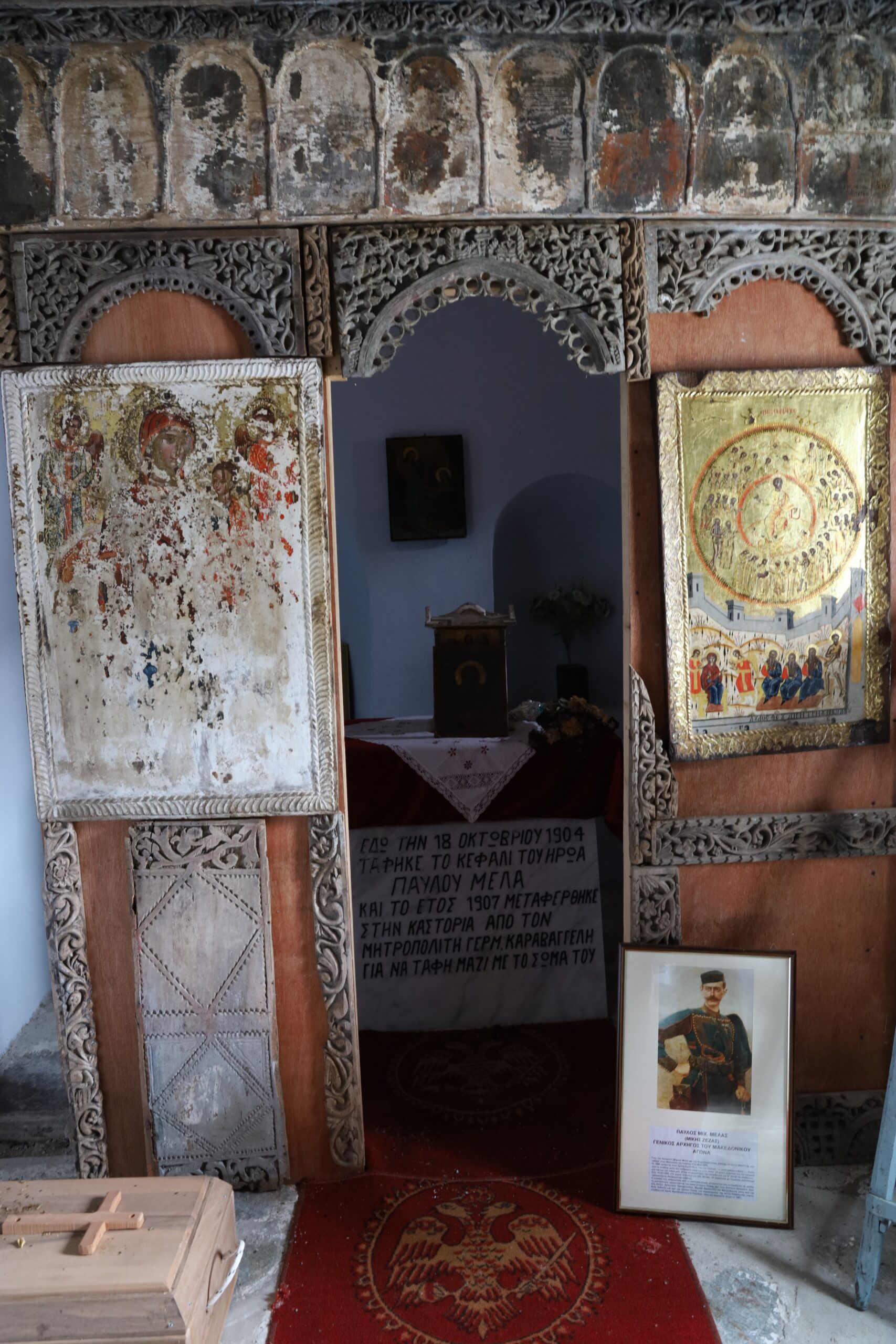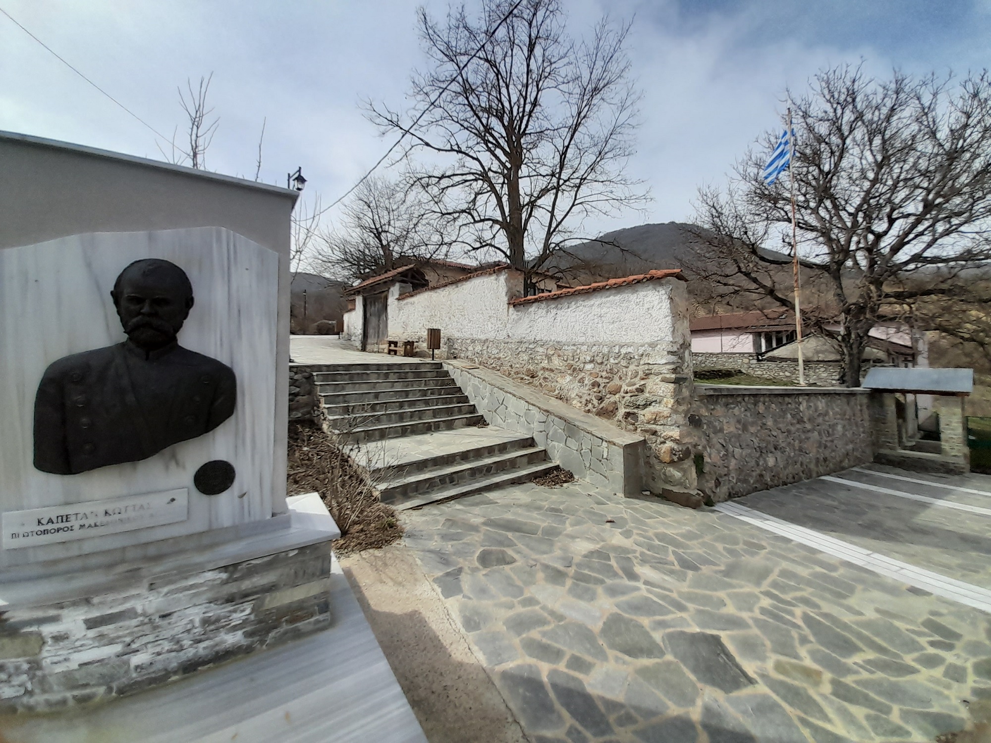 Στο ιερό του παρακείμενου παρεκκλησίου του Αγίου Χαραλάμπους ετάφη αρχικά (1904) η κεφαλή του ήρωα Παύλου Μελά, πρωτεργάτη του Μακεδονικού Αγώνα. Ο παπα-Σταύρος Τσάμης έλαβε ενεργό μέρος στα τότε γεγονότα και υπήρξε συνεργάτης του μητροπολίτη Γερμανού Καραβαγγέλη και του ΄Ιωνα Δραγούμη. Δολοφονήθηκε από Βούλγαρους κομιτατζήδες το 1904.