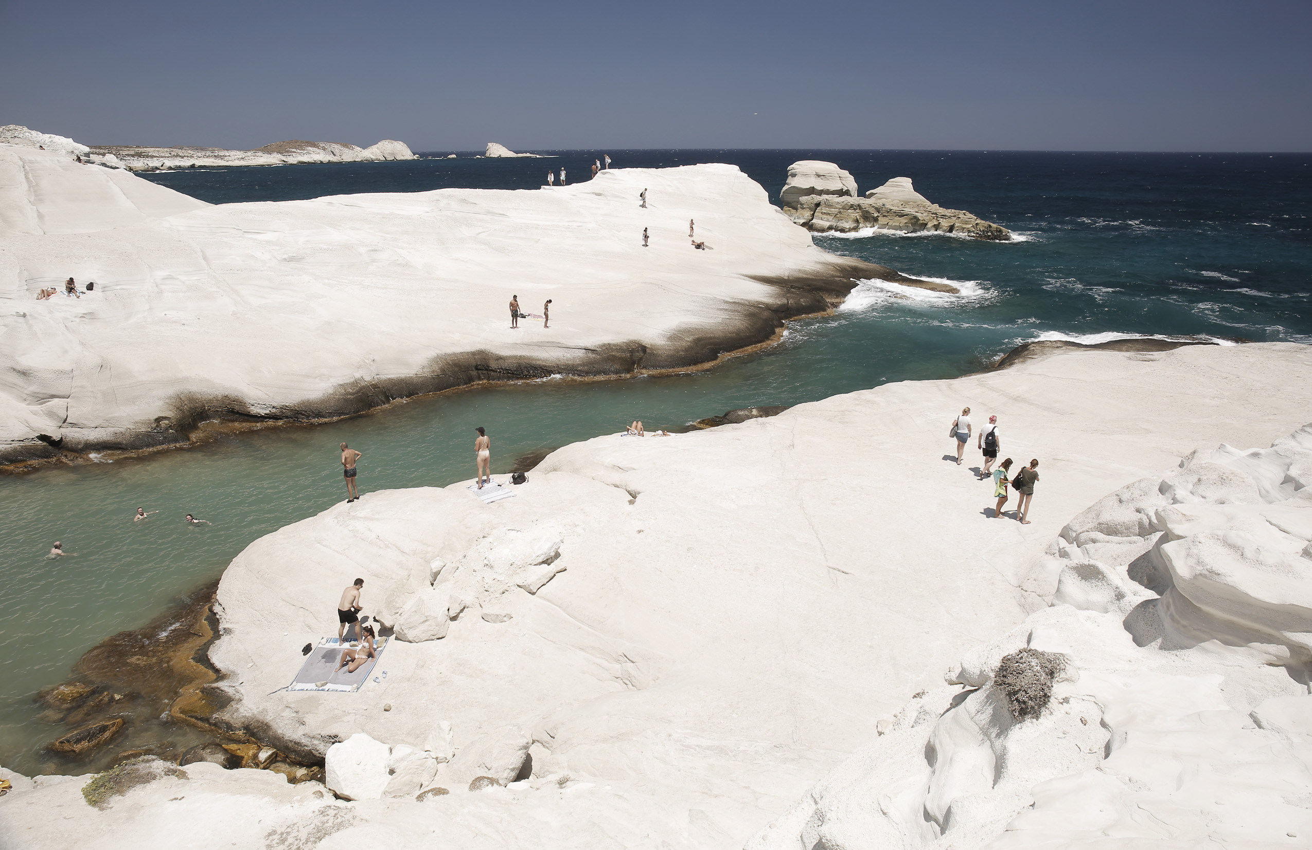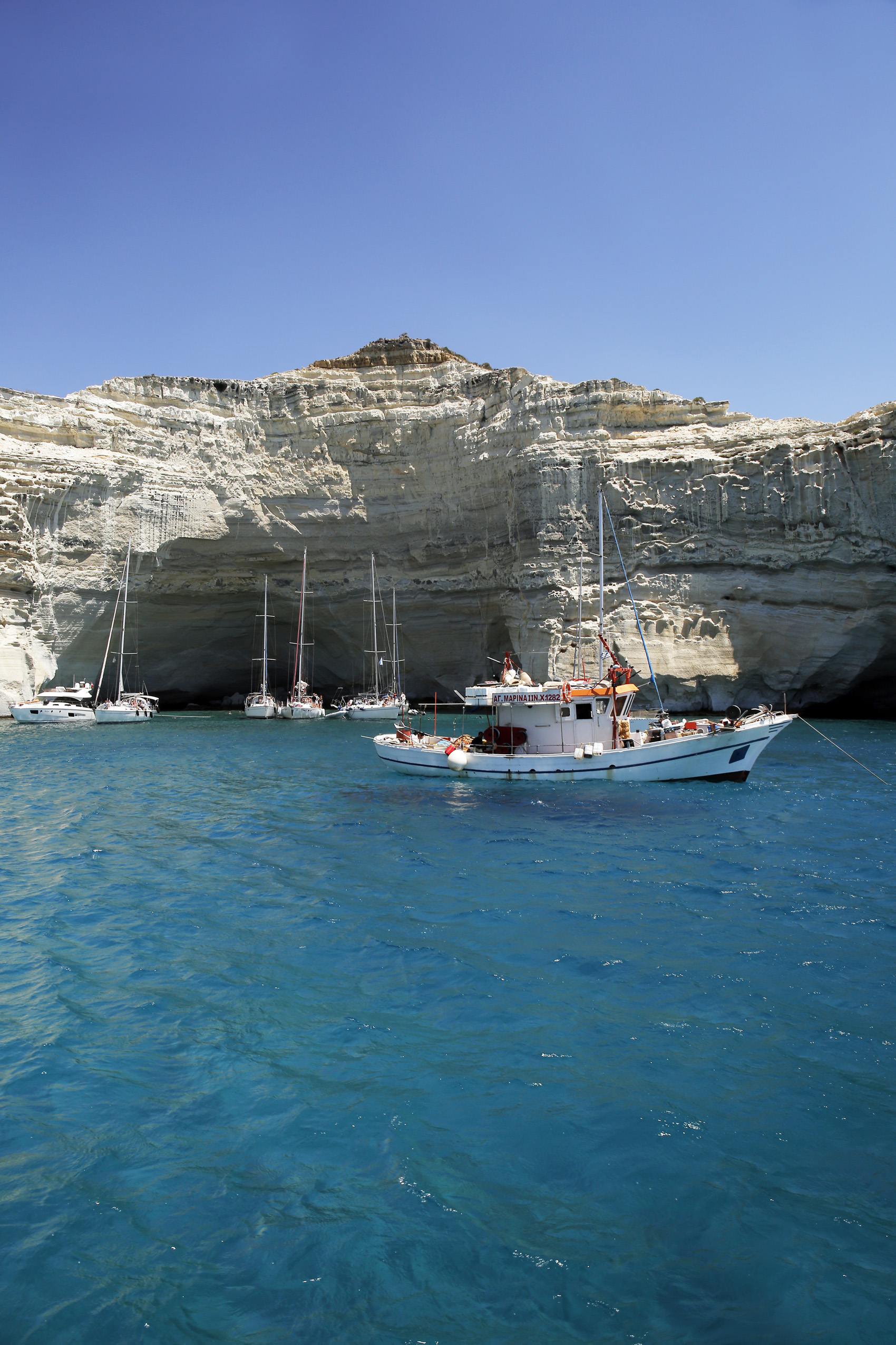 Συνώνυμο της Μήλου, πρωταγωνιστεί στις διαφημίσεις για το νησί, αλλά και στις διεθνείς καμπάνιες του ΕΟΤ. Θα πάτε οπωσδήποτε -αν και σπάνια θα το βρείτε χωρίς εκδρομικά καΐκια, ιδιωτικά σκάφη και πολύ κόσμο. Το Κλέφτικο είναι ένα γεωλογικό πάρκο με παραδεισένια νερά, λευκούς λείους βράχους και μεγάλες λίθινες αψίδες. Σχηματίζονται σπηλιές, με μικρούς αμμώδεις όρμους που έχουν ρηχά νερά με εξωτικά πράσινα-τιρκουάζ χρώματα. Θα μπείτε μέσα σε αυτές κολυμπώντας, ή με μικρό φουσκωτό.