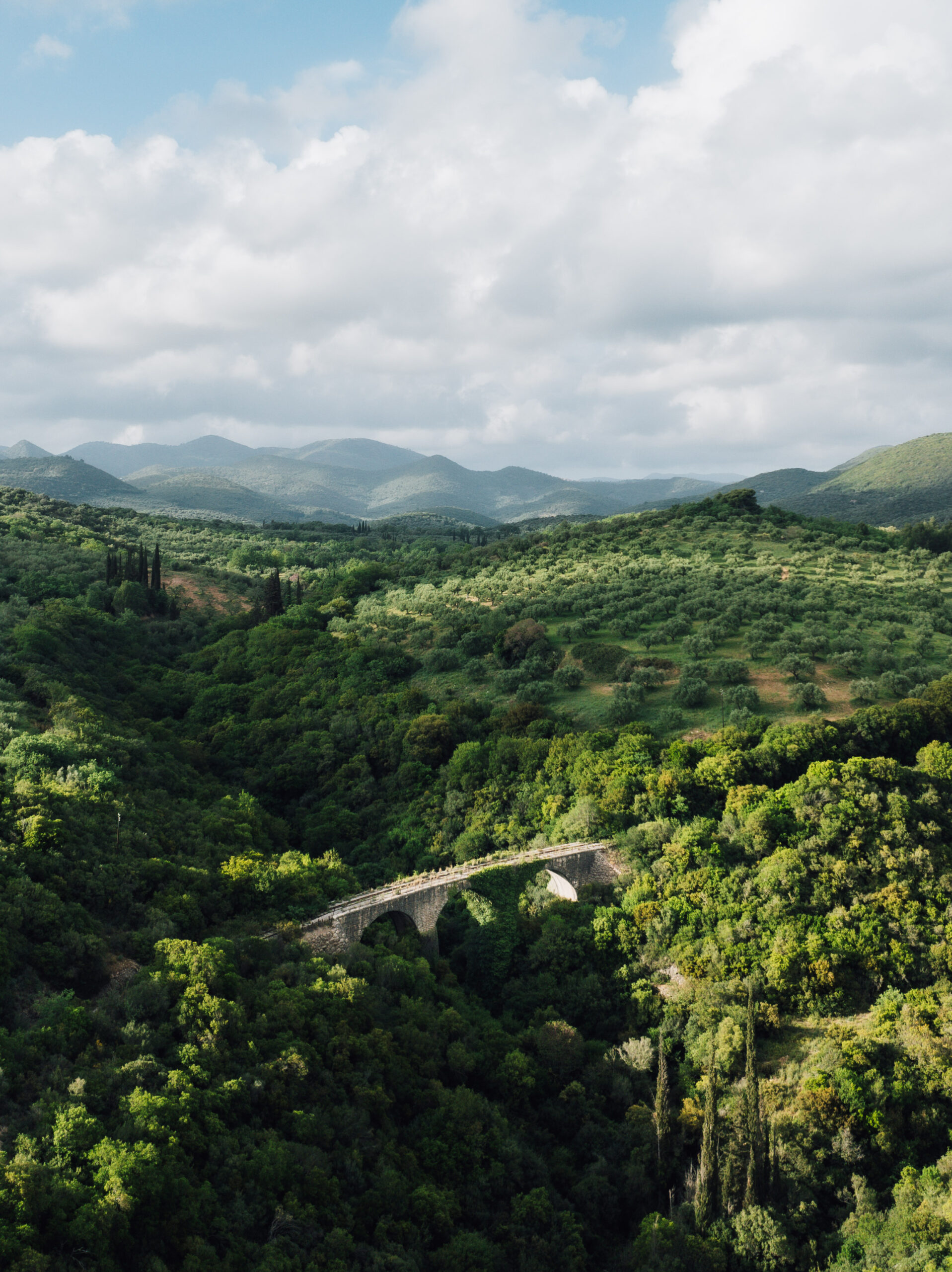 Λίγα χιλιόμετρα ανατολικότερα του από το Καλό Νερό, πολύ κοντά στον επαρχιακό δρόμο, που θα μας οδηγήσει προς Καλαμάτα και Αθήνα, θα δούμε μία εντυπωσιακή πέτρινη τοξωτή γέφυρα με 5 καμάρες. Αυτό μάλιστα που την καθιστά μοναδική είναι το γεγονός ότι έχει κατασκευαστεί σε στροφή. Είναι γνωστή ως «Κακόρεμα» και η αλήθεια είναι ότι αν οδηγείς, δεν την παρατηρείς αρκετά, καθώς μία αρκετά κλειστή στροφή επιβάλλει στον οδηγό την απόλυτη προσοχή. Αν όμως είσαι συνοδηγός, απολαμβάνεις τη θέα της. Εμείς σταθήκαμε μερικές εκατοντάδες μέτρα νωρίτερα και απολαύσαμε τη θέα της μέσα από τις εικόνες του drone που χειρίζεται ο Κωστής Αγγελόπουλος.