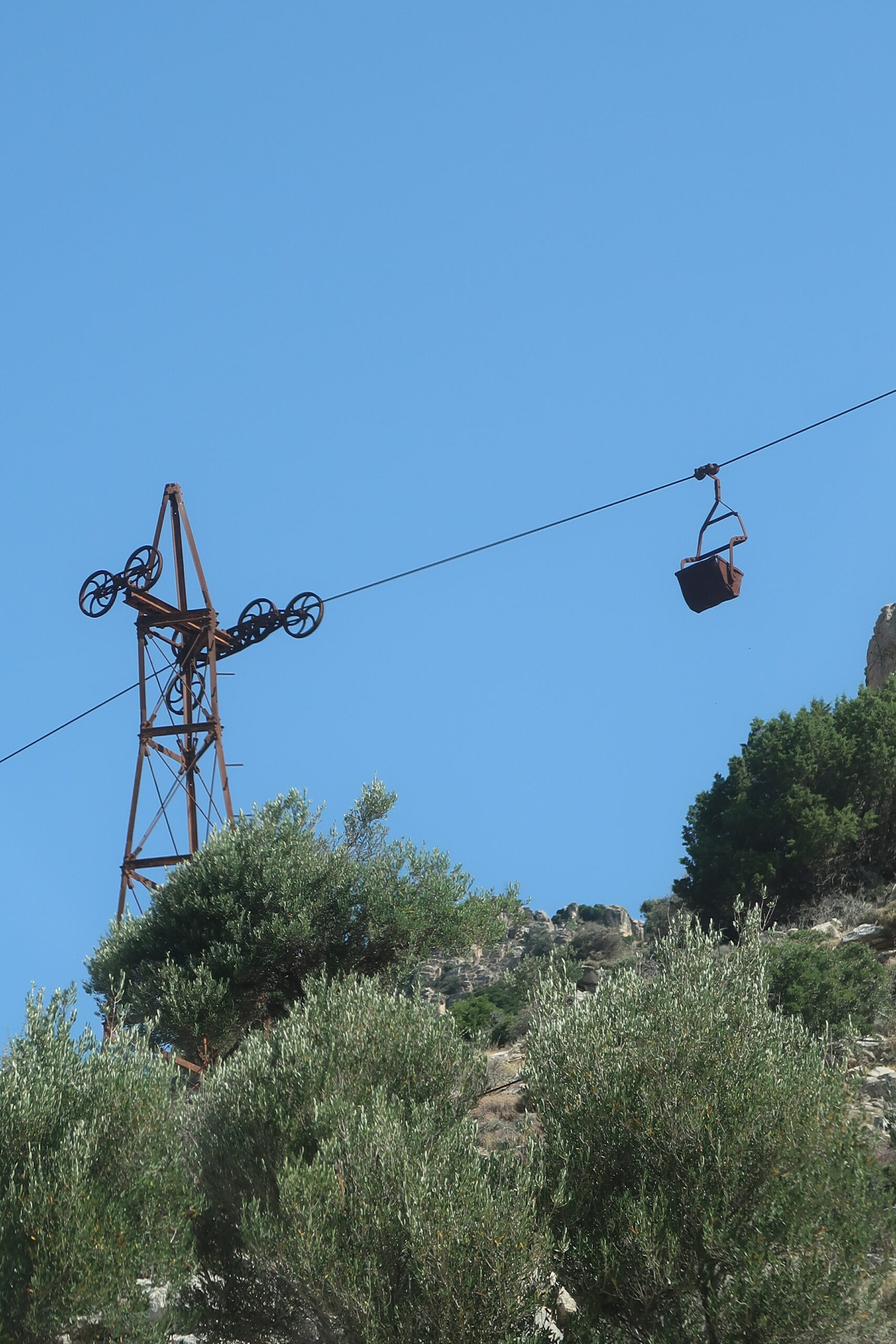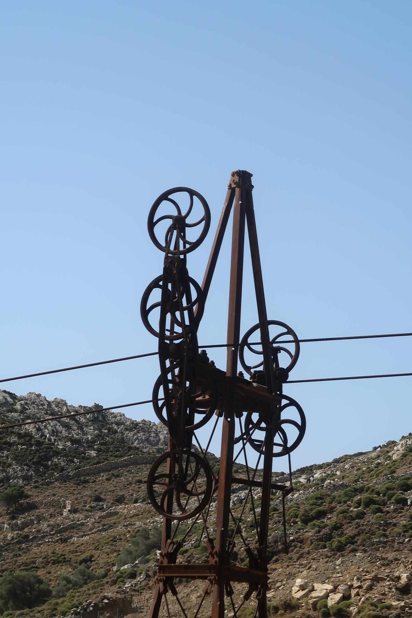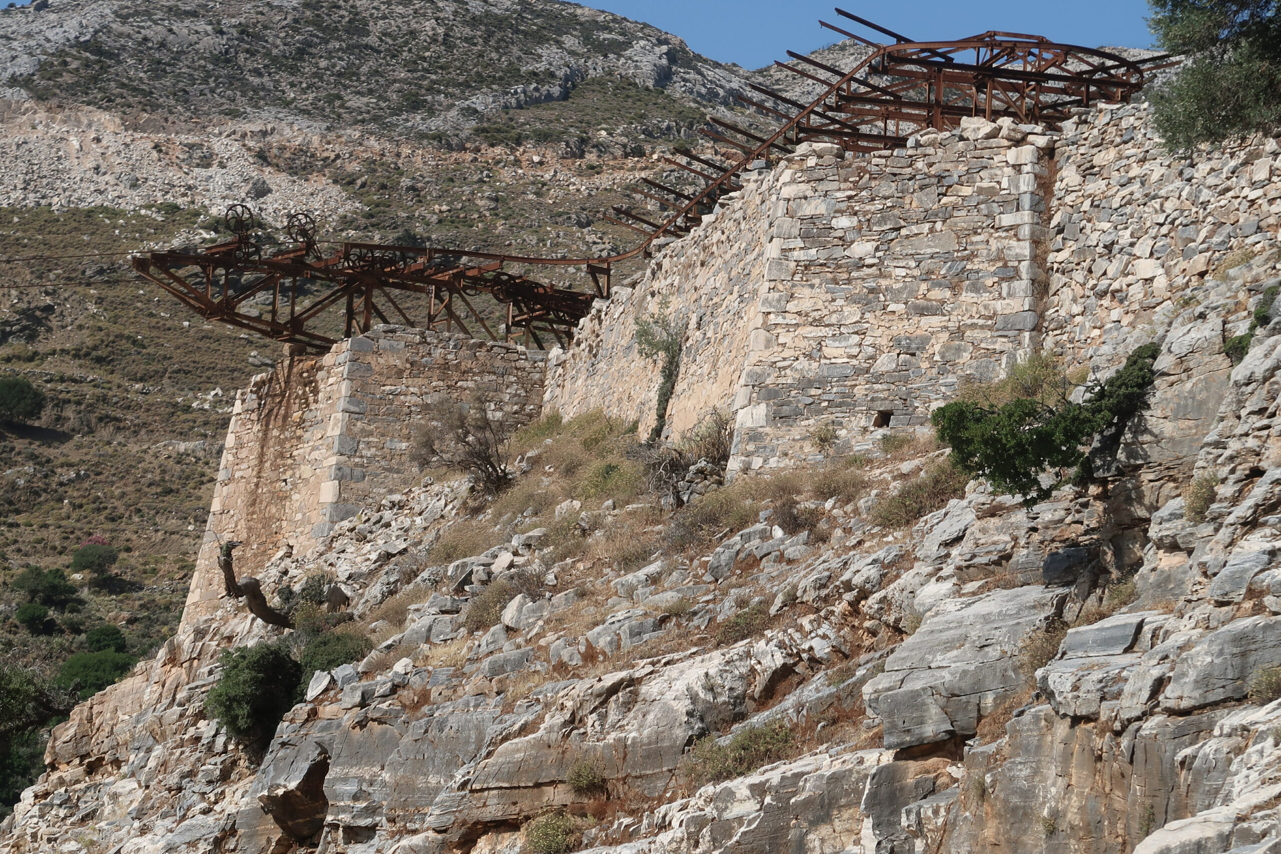 Κάθε φορά που κατέβαινα από την Απείρανθο στην παραθαλάσσια Μουτσούνα σε διάφορα σημεία της διαδρομής, έβλεπα τεράστιες σκουριασμένες κολώνες να στηρίζουν τα απομεινάρια ενός εντυπωσιακού εναέριου σιδηροδρόμου.