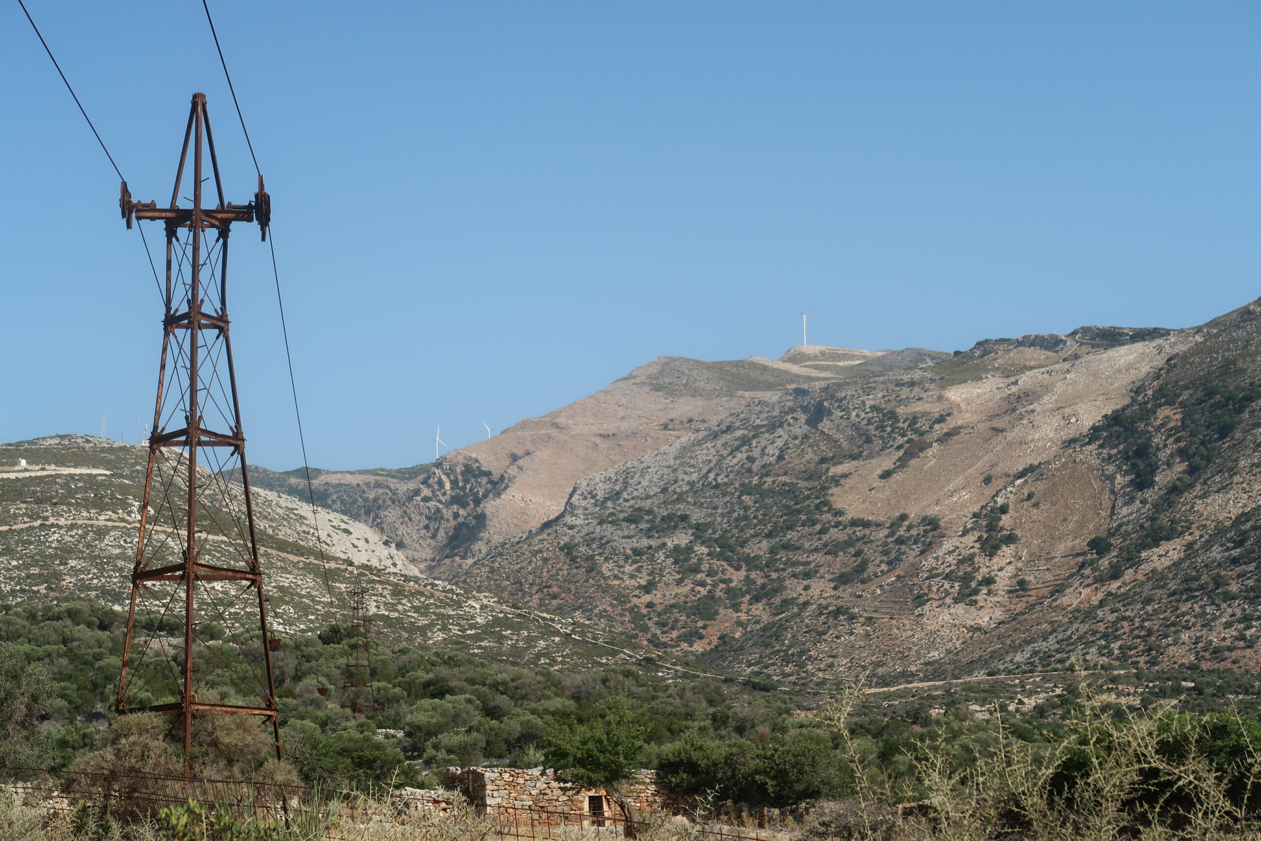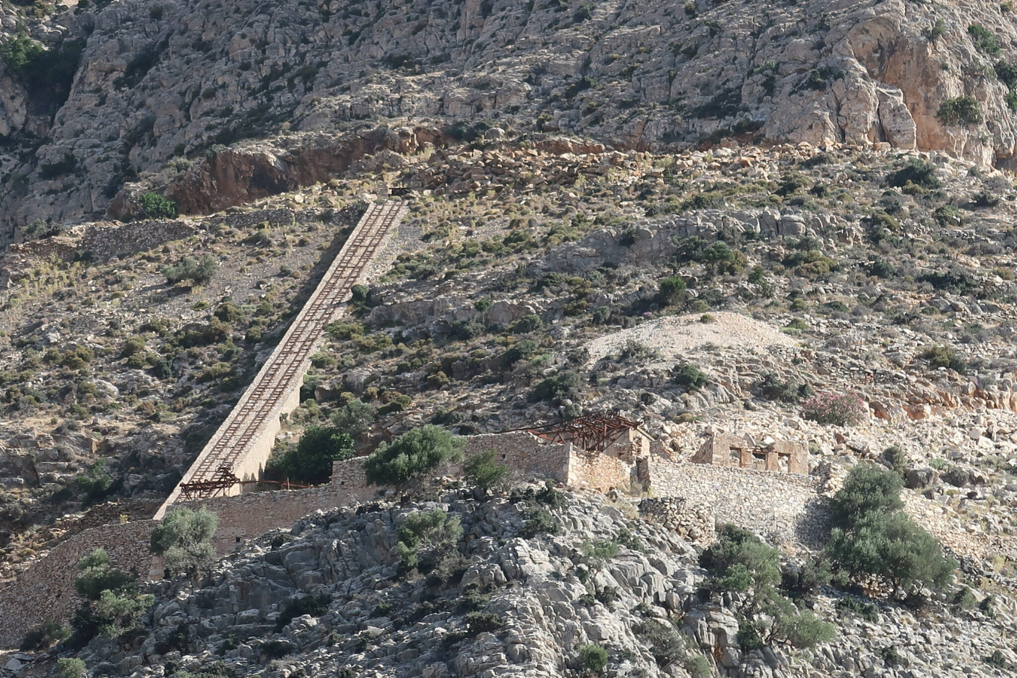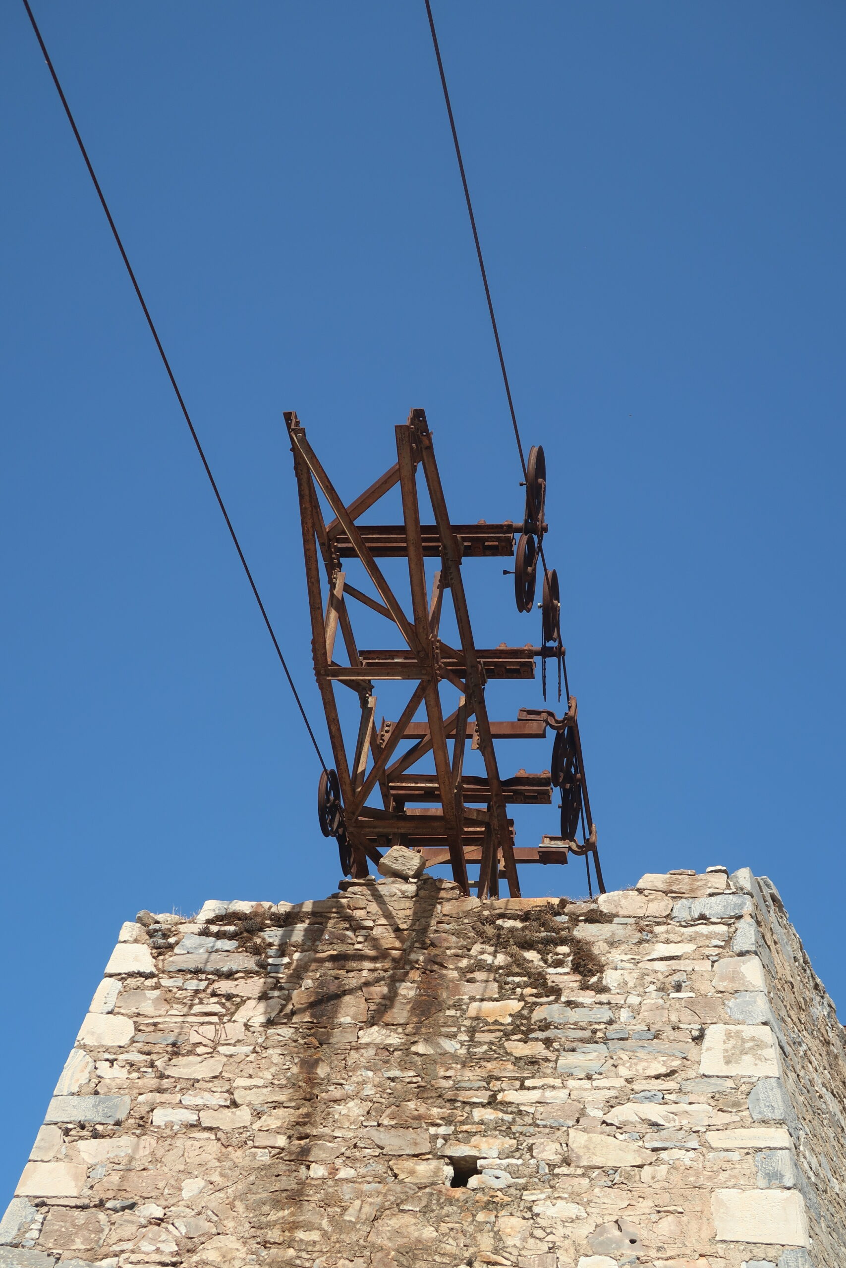 Κάθε φορά που κατέβαινα από την Απείρανθο στην παραθαλάσσια Μουτσούνα σε διάφορα σημεία της διαδρομής, έβλεπα τεράστιες σκουριασμένες κολώνες να στηρίζουν τα απομεινάρια ενός εντυπωσιακού εναέριου σιδηροδρόμου.