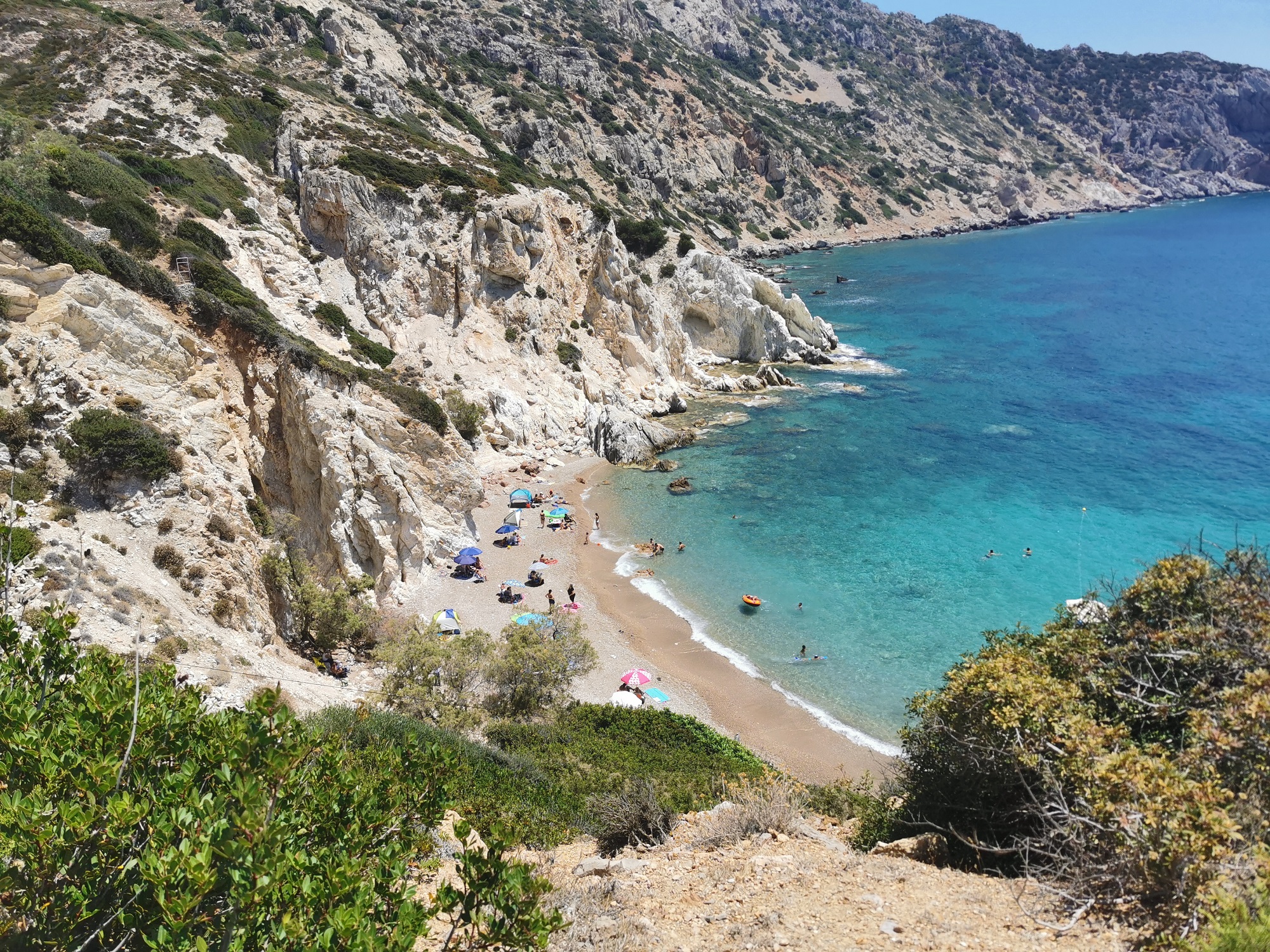 Ένας κλειστός όρμος δίπλα στον Γιόσωνα, φιλοξενεί την όμορφη παραλία με το λευκό βότσαλο, που δεν συγκεντρώνει πολύ κόσμο. Αξίζει να καθίσετε στα ταβερνάκια της για φρέσκο ψαράκι και θαλασσινά.