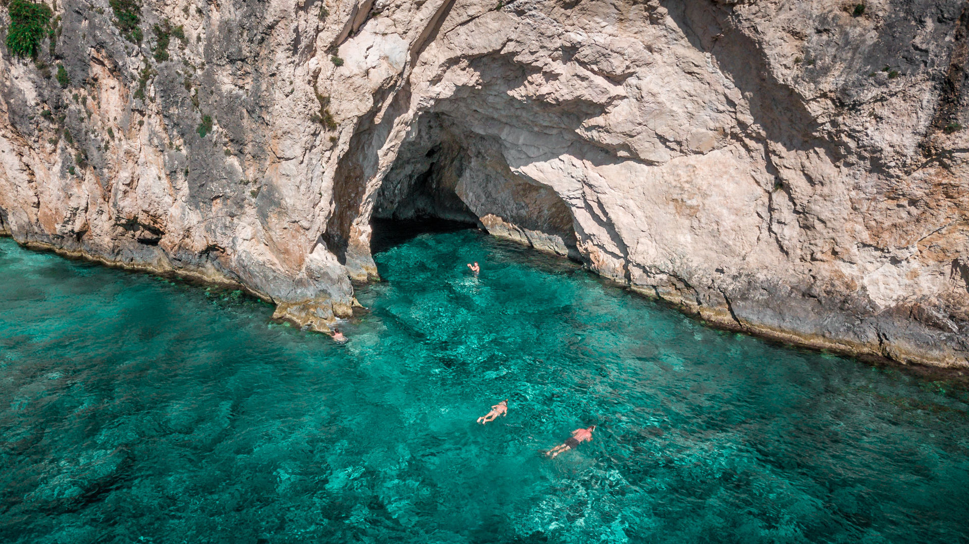 Ένα υπέροχο φυσικό αξιοθέατο της Ζακύνθου που συναγωνίζεται επάξια σε επισκεψιμότητα την παραλία Ναυάγιο και θα σας θυμίσει το Κλέφτικο της Μήλου. Τα λευκά βράχια σχηματίζουν διαδοχικές αψίδες και οι σπηλιές φωτίζονται και παίρνουν χρώμα από τα πρασινογάλανα νερά -εξ ου και το όνομά τους. Οι λάτρεις των καταδύσεων και του snorkeling θα βρουν εδώ τον παράδεισό τους. Μπορείτε να πάτε με τουριστικό σκάφος από τον Μακρύ Γιαλό, από τον Άγιο Νικόλαο, ή από το λιμάνι της πόλης.