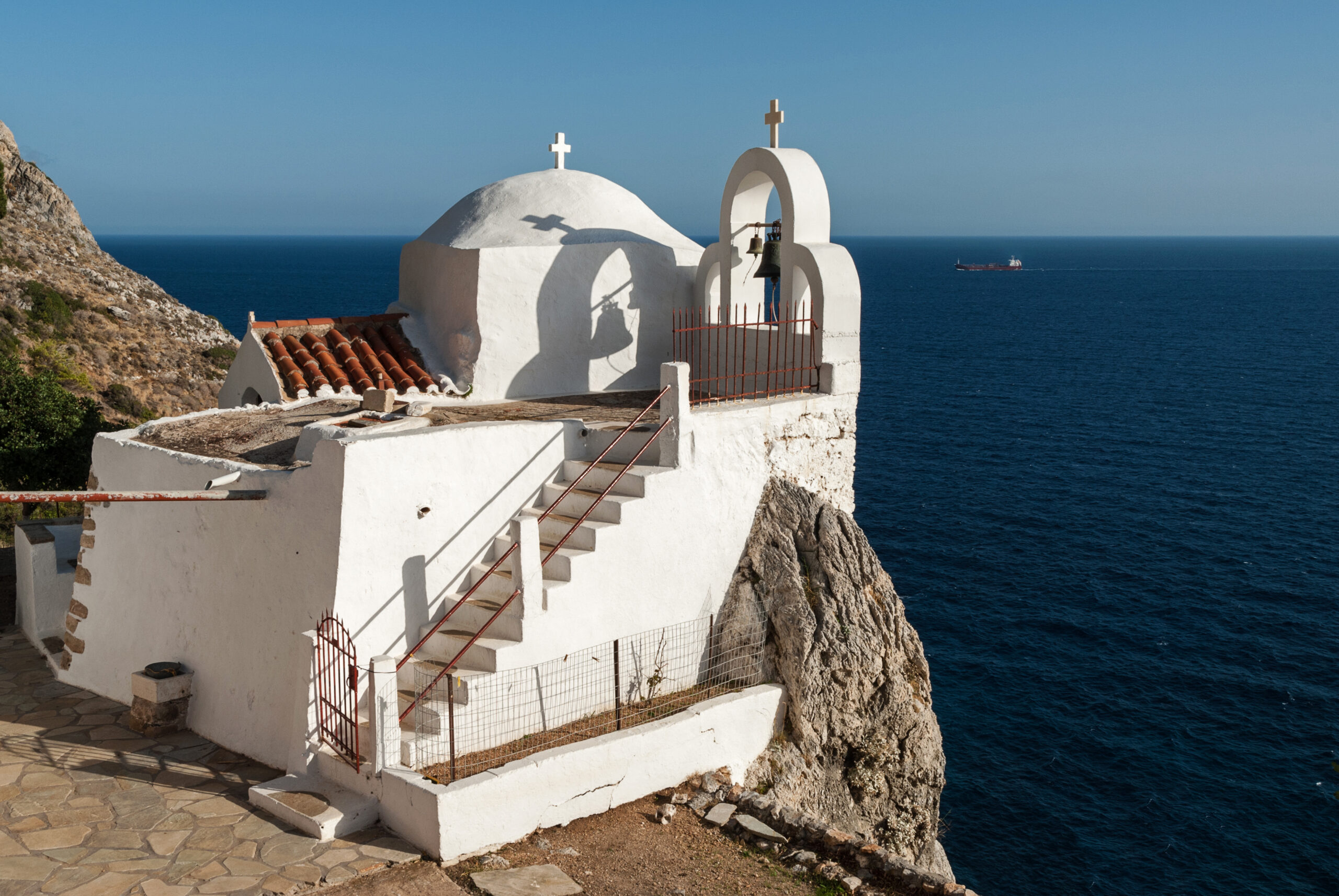 Μπορείτε επίσης να καλύψετε τον χωματόδρομο με το αυτοκίνητο αν και σε κάποια σημεία θέλει προσοχή και μόλις φτάσετε στην αφετηρία του μονοπατιού να συνεχίσετε πεζοπορώντας. Λίγο πιο κάτω από την Αγία Ειρήνη βρίσκεται και το μικρό εκκλησάκι του Αγίου Γεωργίου του 15ου αι., συνδέονται μεταξύ τους με μικρό μονοπάτι. Κοντά στο αγκυροβόλι της Αγίας Ειρήνης υπάρχει επίσης μια σπηλιά, η λεγόμενη Κοκολιάρα σημείο συγκέντρωσης των λειψάνων των μοναχών των μονών αλλά και των ασκηταριών της περιοχής. Η θέα από και από τις δυο μονές είναι απλά συγκλονιστική.