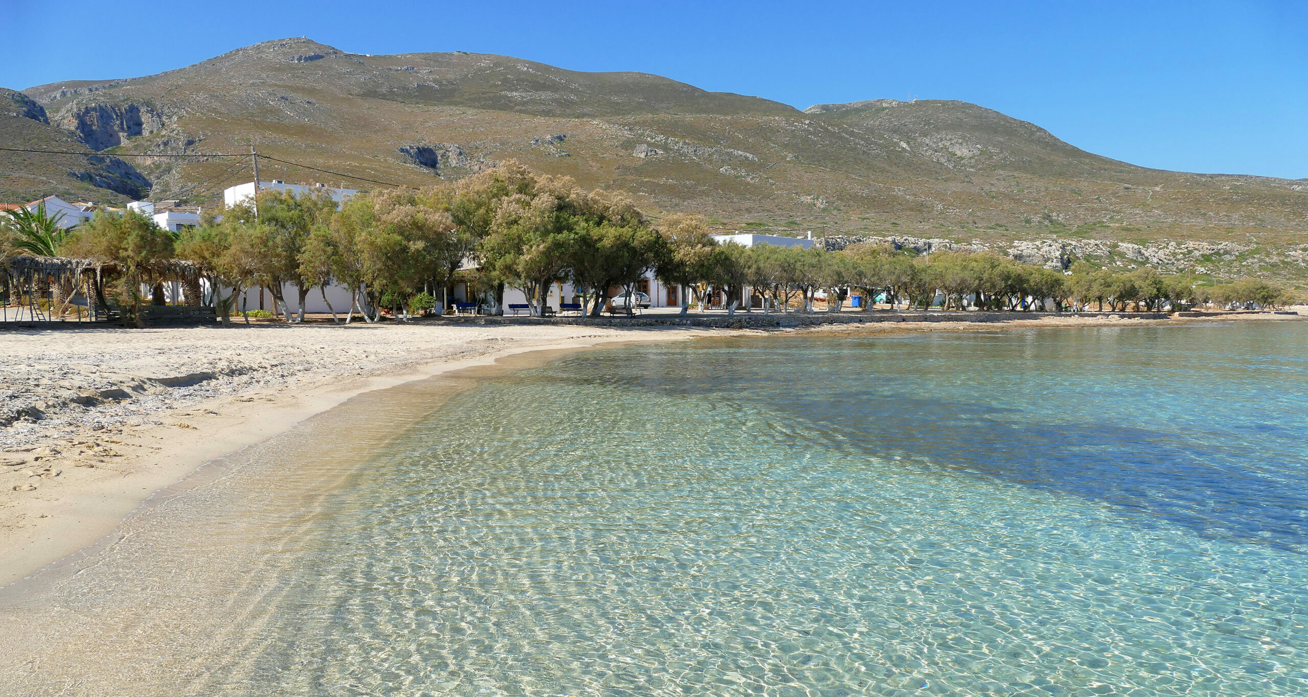 Παρόλο που είναι δίπλα στο λιμάνι, πολλοί θεωρούν την αμμουδιά του οικισμού μια από τις καλύτερες στο νησί. Υπάρχουν υποδομές και beach bar.