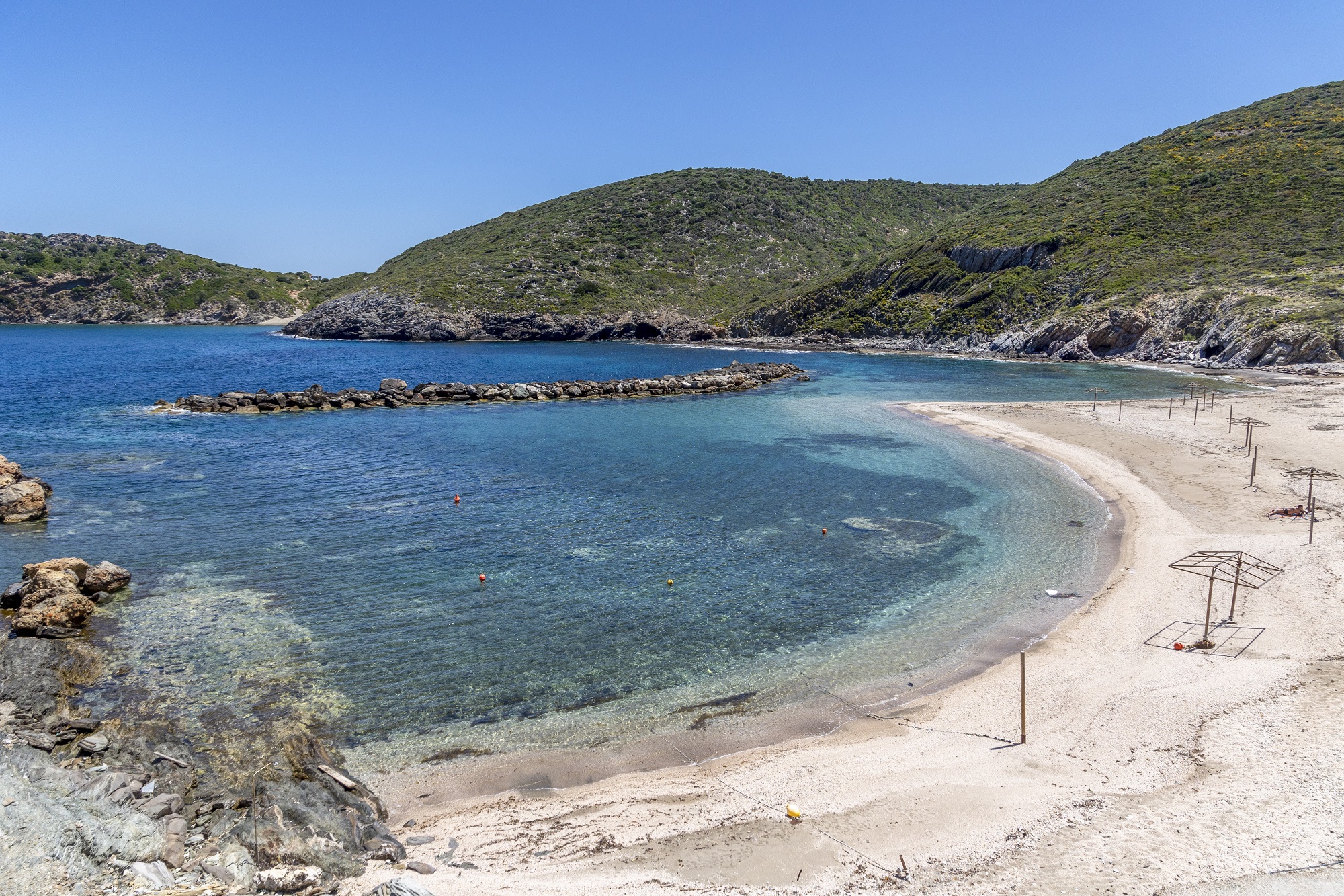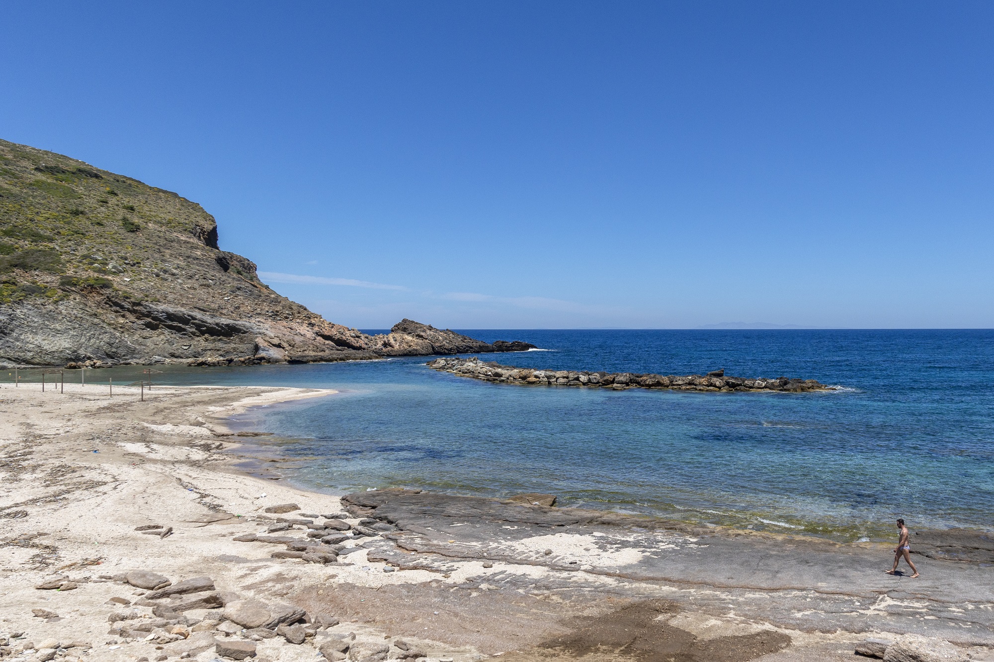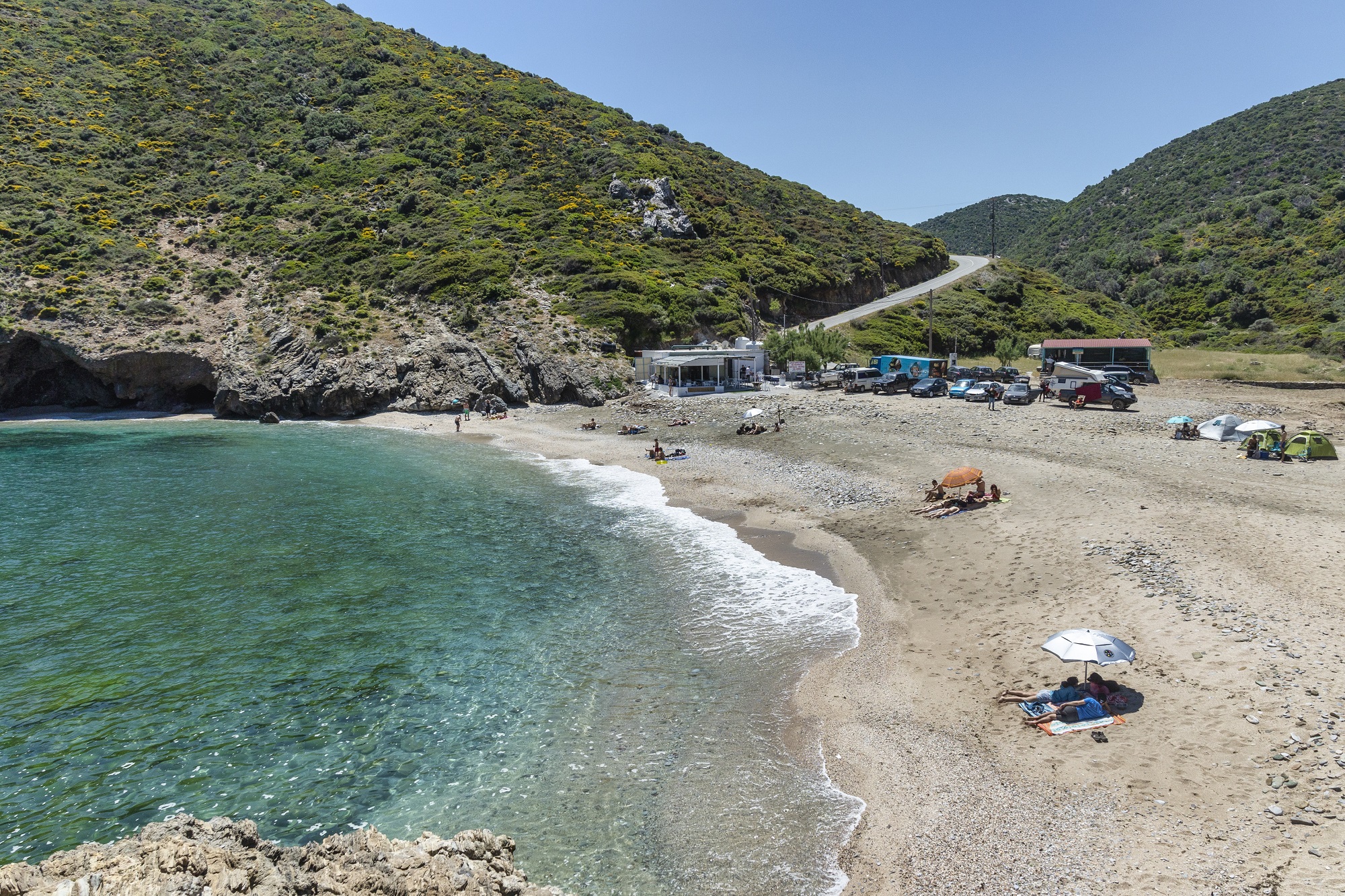 Άλλη μία καρτποσταλική, μπλε, μικρούτσικη παραλία δίπλα στον Λιμνιώνα, με λίγα πετρόκτιστα σπίτια αριστερά-δεξιά, φτιαγμένα με κεραμοσκεπές. Aρκετά προστατευμένη από τον αέρα, με αίσθηση νοσταλγίας, χωρίς ομπρέλες και τα συναφή. Αν θέλετε, πηγαίνετε και με τα πόδια ή και με το αυτοκίνητο από τον Λιμνιώνα, ακολουθώντας τον στενό, ασφαλτοστρωμένο δρόμο.