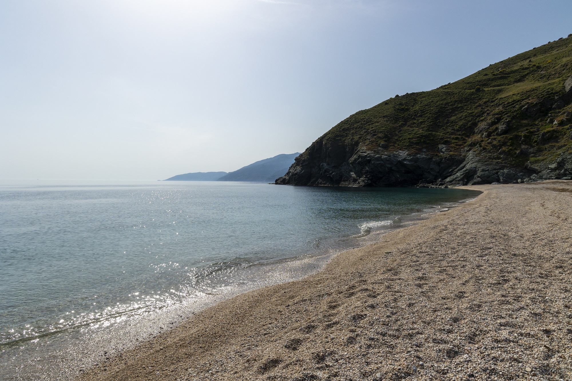 Πολύ μεγάλη, πελαγίσια παραλία, ανοιχτή στους ανέμους, μετά τον Πλατανιστό και τους καταρράκτες του, στον δρόμο για το Κάβο Ντόρο. Δεν είναι μόνο η πεντακάθαρη, γαλανή θάλασσα. Είναι και το παραμυθένιο τοπίο –άλλο ένα από αυτά τα μοναδικά που βρίσκεις στη νότια Εύβοια.