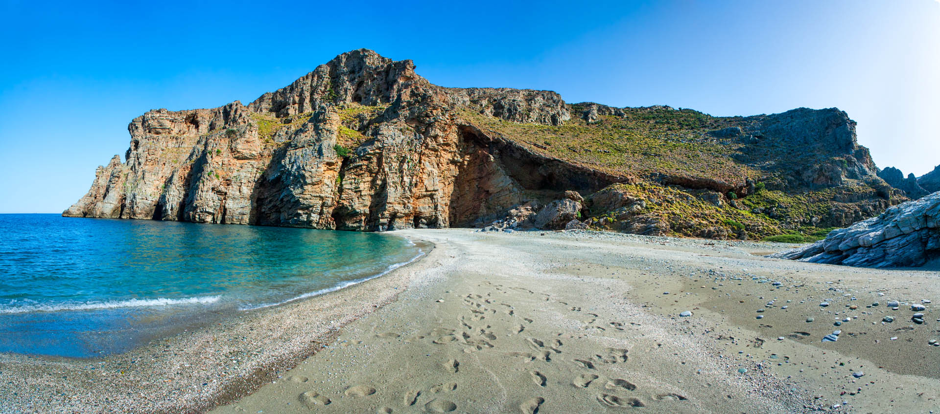 Μέχρι τα Μεσοχώρια, λοιπόν, τα πράγματα είναι πιο ήρεμα. Από την παραλία Καλλιανού και πέρα, όμως, το τοπίο αλλάζει και γίνεται πιο επιβλητικό και ακατέργαστο. Σε πολλές παραλίες καταλήγουν φαράγγια, με τα ρέματά τους να τελειώνουν την πορεία τους στη θάλασσα, σχηματίζοντας μαγευτικά ποταμάκια και λιμνούλες δίπλα ακριβώς στο αλμυρό νερό.